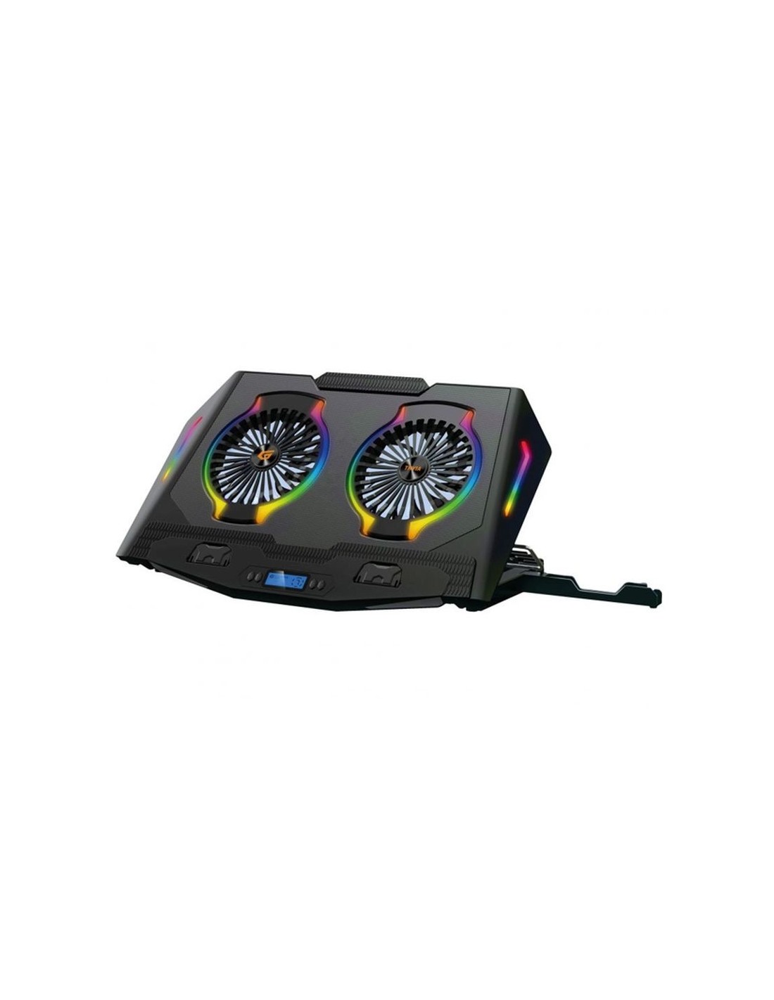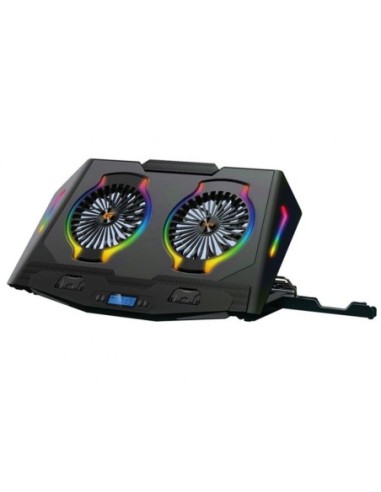 Pantalla LCD que muestra la velocidad del ventilador y el modo de luz RGB 2 ventiladores ultra silenciosos y velocidad del viento ajustable en varios engranajes Modo de luz RGB ajustable Soporte para teléfono móvil integrado 4 niveles de altura regulable para un posicionamiento ergonómico perfecto Apto para portátiles de hasta 17 Diseño antideslizante Completo con interruptor de encendido para una conveniente funcionalidad de encendido / apagado ¡Optimice su experiencia de juego con el soporte de enfriamiento para computadora portátil para juegos THYIA! Los efectos de iluminación RGB ajustables enriquecen el ambiente de juego, mientras que los ventiladores silenciosos pero potentes crean condiciones de funcionamiento seguras y cómodas para su dispositivo portátil. El soporte de enfriamiento en sí es alimentado por USB y está equipado con 2 puertos USB para que pueda funcionar en cualquier lugar sin la necesidad de una toma de corriente mientras ofrece la comodidad de los puertos de repuesto. ¡Un poderoso soporte para los jugadores! Más información Color Negro EAN 4015867225622 Número de modelo THYIA02B Contenidos del paquete Soporte de refrigeración para computadora portátil para juegos Cable USB Guía de instalación rápida en varios idiomas Peso del producto (kg) 1.242 Ancho de producto (mm) 460 Profundidad del producto (mm) 296 Altura del producto (mm) 50 Tamaño del ventilador 125x125x15mm Ajuste de altura 4 etapas Luz Iluminación LED RGB Número de ventilador 2 Versión USB 2.0 https://www.conceptronic.net/conceptronic_en/thyia02b-ergo-2-fan-gaming-laptop-cooling-stand-110506407101
