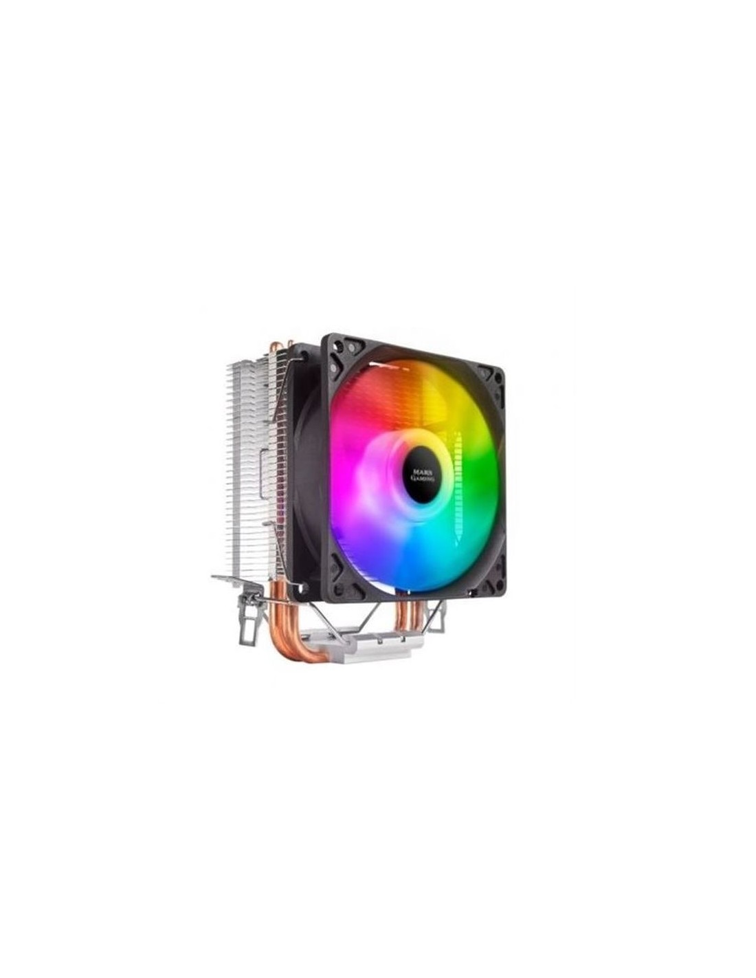 Refrigeración CHROMA RGB hasta 130W TDP 2x Heatpipes HCT Ventilador AUTO CHROMA RGB TDP de hasta 130W Silencioso con tecnología PWM ALTO RENDIMIENTO: TDP 130W Capaz de soportar CPUs de hasta 130W de TDP, gracias a sus dos heatpipes HCT y a su gran radiador vertical con láminas de alta densidad, te permite disfrutar de tu PC al máximo. Además, la innovadora tecnología PWM te garantizará siempre el menor ruido posible. ILUMINACIÓN ESPECTACULAR CHROMA RGB ILUMINACIÓN ESPECTACULAR CHROMA RGB El ventilador incorporado cuenta con una impresionante iluminación CHROMA RGB con un efecto de iluminación Rainbow CHROMA automático. RGB Control MULTISOCKET UNIVERSAL MULTISOCKET UNIVERSAL Gracias a su multisocket universal, el disipador MCPUARGB cuenta con una amplia compatibilidad que te permite utilizarlo con gran cantidad de placas base, ofreciéndote soporte tanto para Intel series LGA 1200, 1156, 1155, 1151, 1150, 775 y AMD series AM4, AM3+, AM3, AM2+, AM2, FM2, FM1. CARACTERÍSTICAS TÉCNICAS- Dimensiones 124x93x67mm Peso 269g Iluminación RGB Chroma Material Base de cobre, aletas de aluminio TDP 130W Socket INTEL LGA 1200/1156/1155/1151/1150/775 y AMD AM4/AM3+/AM3/AM2+/AM2/FM2/FM1 Ventilador 90x25mm Antivibraciones Sí Flujo de aire 26.9-65.3 CFM Nivel sonoro 9-26 dBA Velocidad 800-2200 ± 10% RPM Potencia máx. 2.76W Vida útil 60.000 horas Rodamientos Hidráulico Conexión PWM 4pin N de heatpipes 2 Pasta térmica Sí Voltaje 12VDC Corriente 0.23A https://es.marsgaming.eu/es/refrigeracion/mcpuargb_mcpuargb