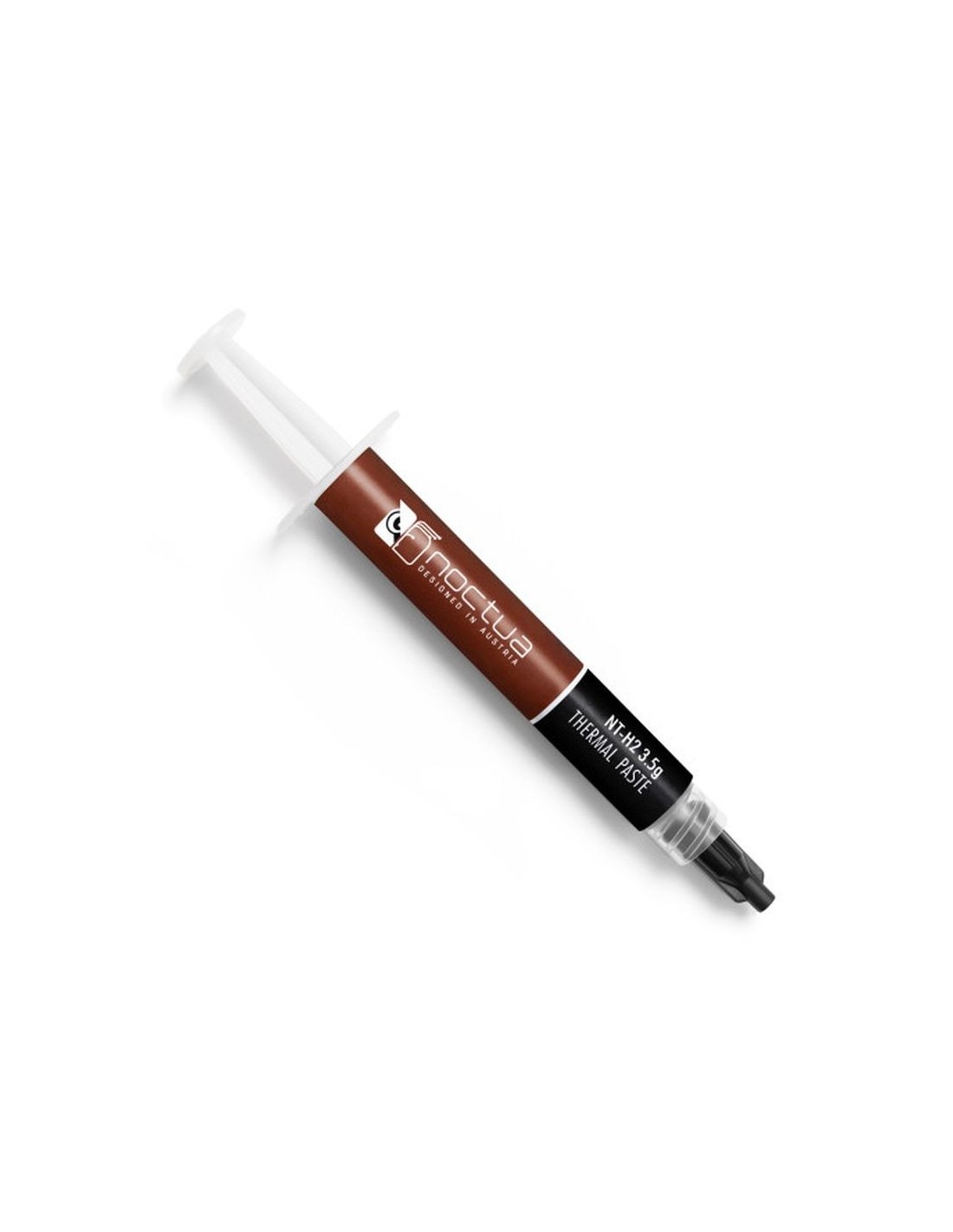 Noctua NT-H2. Densidad: 2,81 g/cm³, Color del producto: Gris, Intervalo de temperatura operativa: -50 - 200 °C. Volumen: 1,2 ml, Peso: 3,5 g. Cantidad por paquete: 1 pieza(s), Ancho del paquete: 70 mm, Profundidad del paquete: 30 mm. Ancho de la caja principal: 322 mm, Longitud de la caja: 335 mm, Alto de la caja principal: 312 mm Peso y dimensiones Volumen 1,2 ml Peso 3,5 g Empaquetado Altura del paquete 157 mm Cantidad por paquete 1 pieza(s) Peso del paquete 55 g Profundidad del paquete 30 mm Ancho del paquete 70 mm Características Color del producto Gris Intervalo de temperatura operativa -50 - 200 °C Densidad 2,81 g/cm³ Datos logísticos Ancho de la caja principal 322 mm Longitud de la caja 335 mm Alto de la caja principal 312 mm Cantidad por caja 80 pieza(s) Peso del envase completo 5,14 kg