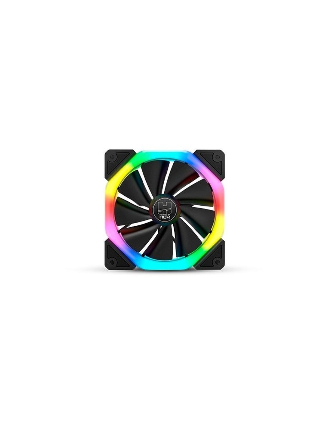 DUAL RING RAINBOW RGB FAN Ventilador de 120 mm Doble anillo LED RGB rainbow Ultra silencioso con pads de goma antivibración Gran flujo de aire Compatible con chasis que dispongan de controladora de conexión 6 pines * (Excepto Infinity ATOM) Dimensiones + 120 x 120 x 25 mm Velocidad + 1100 RPM Flujo de aire + 32 CFM (máx.) Ruido + 22 dB Presión Estática + 1.2 mm H2O Voltaje + 5V (LED) ~ 12V (ventilador) Corriente + 12V : 0,15A Rodamientos + Hydro bearing Conexión + 6 pines Peso + 150 g Longitud del cable + 650 mm Vida útil + 40.000 horas https://www.nox-xtreme.com/refrigeracion/d-fan
