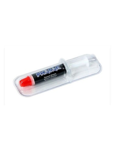 Silicona térmica en jeringa Silicona térmica en un práctico formato jeringuilla, con un excelente rendimiento térmico que suponen una evolución frente a la tecnología de silicio. Optimizada para facilitar su aplicación sobre procesadores, chips, tarjetas gráficas o cualquier otro uso que necesite una disipación eficiente del calor. Especificaciones Color / Gr: Dorado/ 0,5 gr Conductividad: > 1.8 W/M-K Impedancia: < 0.123 C / W