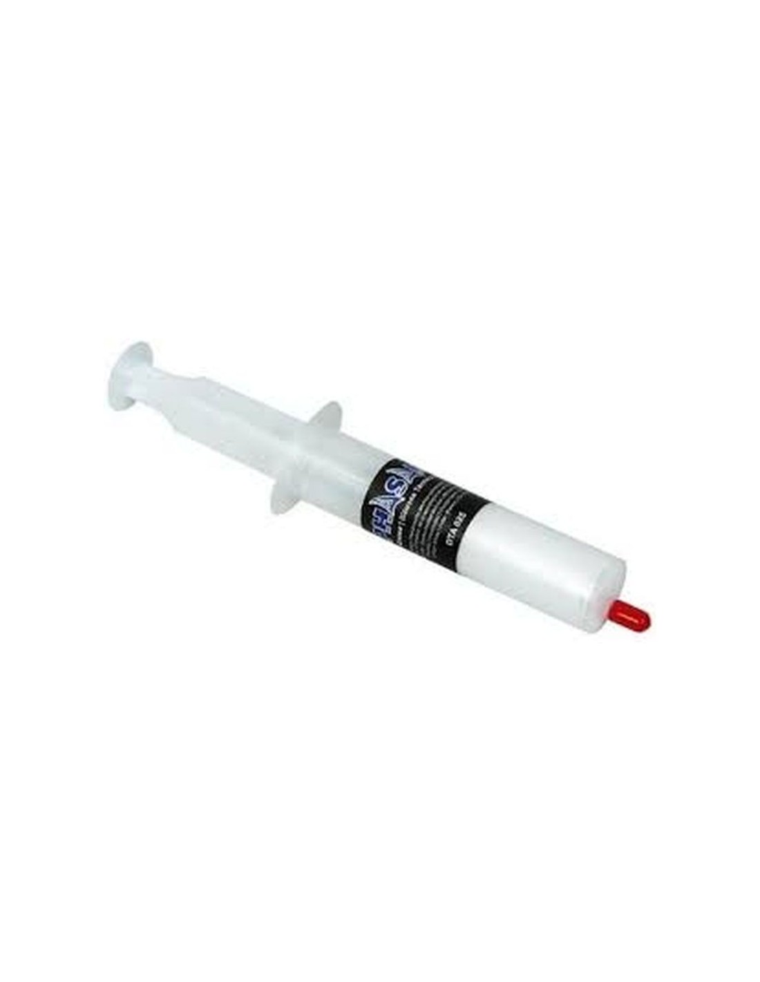 Silicona térmica en jeringa Silicona térmica en un práctico formato jeringuilla, con un excelente rendimiento térmico que suponen una evolución frente a la tecnología de silicio. Optimizada para facilitar su aplicación sobre procesadores, chips, tarjetas gráficas o cualquier otro uso que necesite una disipación eficiente del calor. Especificaciones Color / Gr: Blanco/ 25 gr Conductividad: > 0.925 W/M-K Impedancia: < 0.229 C / W