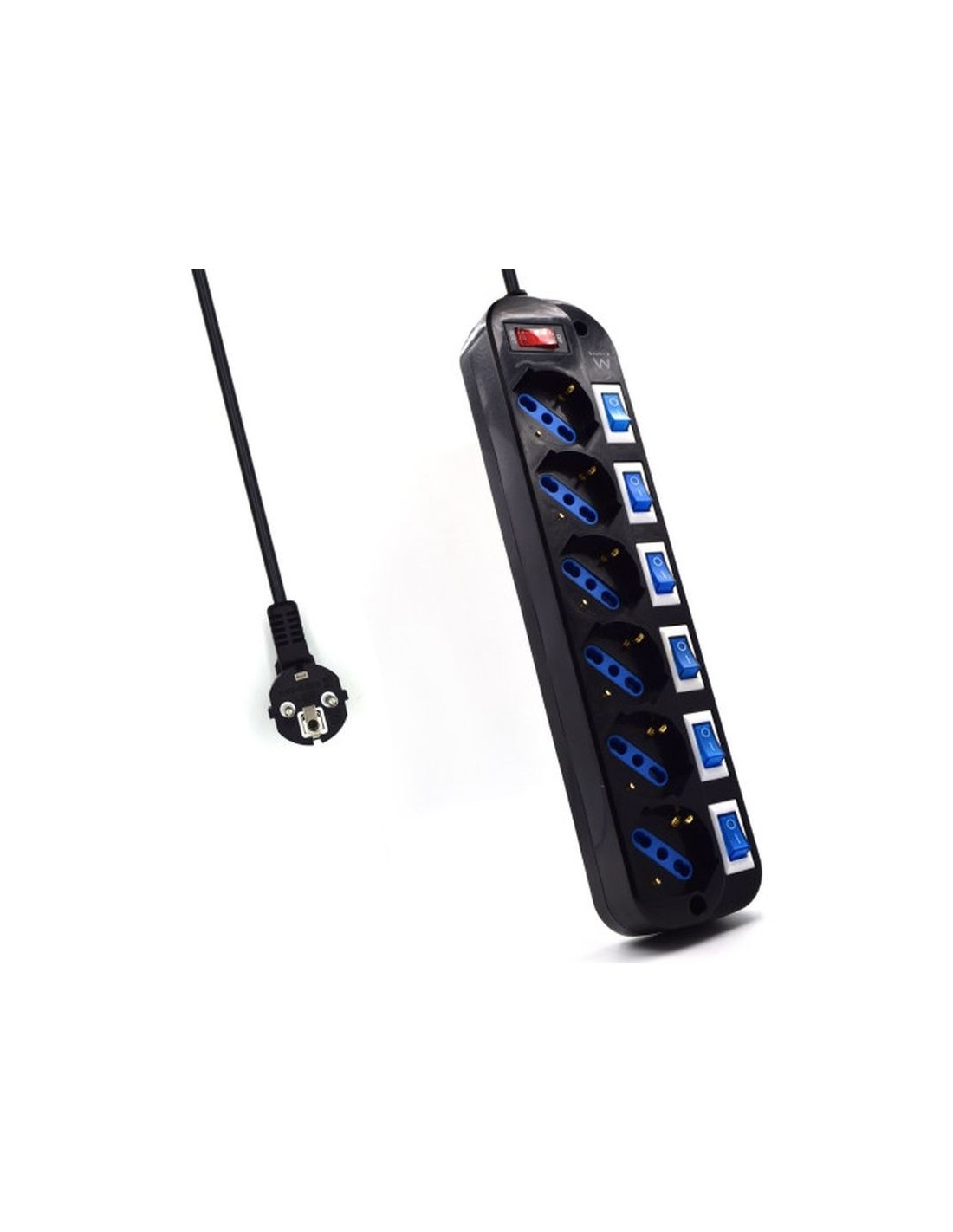 Regleta de alimentación de 6 tomas, con protección contra sobrecarga e interruptor de alimentación en cada tomas EW3851 ¡Elija usted mismo qué dispositivo apagar! Regleta con protección contra sobretensiones 6 tomas individuales alemán / italiano Cada toma tiene un interruptor de encendido / apagado iluminado Interruptor principal para apagar completamente todos los dispositivos Protección de seguridad infantil en cada tomas Technical data Outlets: 6 x 10/16A Type L / Type F Switch with light: Yes Switch: Yes Protections: Surge protection Child protection: Yes Wall mount: Yes Cable: H05VV-F 3G 1.0 mm2 Cable length: 1.5 mt. Plug connector: Safety plug (type F, CEE 7/7) Max voltage: 250V/3500W Color: black EAN: 8054392617966 Logistic Product Weigth (g):491.00 g Retail packaging Dimension (mm):140 x 415 x 63 Retail packaging Weigth (g):570 g Master carton Qty:24 Master carton Dimension (cm):58 x 37 x 44 Master carton Weigth (kg):15.50 kg https://ewent-eminent.com/es/productos/516-potencia/regleta-de-alimentaci%C3%B3n-de-6-tomas-con-protecci%C3%B3n-contra-sobrecarga-e
