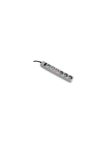 GS protector contra sobretensiones aprobado con tomas de corriente alterna de Alemán Aumento de energía y el exceso de tensión de la supresión : protege los equipos , otros equipos de oficina y electrodomésticos de subidas de tensión y picos dañinos 16 Un interruptor automático Alta calidad , caja de plástico resistente al fuego Orificios de montaje Cable de alimentación VDE - aprobado con enchufe alemán Interruptor de potencia con luz indicadora Especificaciones Valoración: hasta 250 V CA , 16 A, la clase de protección IP20 picos de tensión máxima de 4.500 V , máximo pico de corriente de 4.500 A Tomas de corriente : 6 PC , tipo alemán La longitud del cable : 1,8 m Color: gris https://www.gembird.com/item.aspx?id=6866