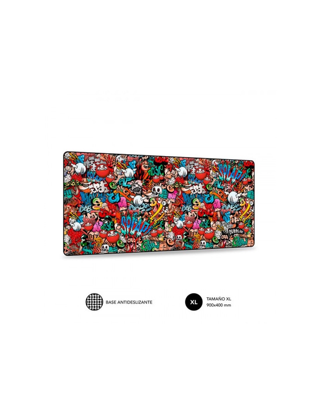 Magnificas dimensiones. Disfruta de sus 90 * 40 cm, 3 mm de espesor, no sólo para el ratón sino también para tu teclado. El diseño Graffiti está inspirado en la versión más urbana del público joven en la que dejan volar su imaginación y creatividad en los lugares más insospechados. Fabricada sobre caucho antideslizante que garantiza su durabilidad. El marco cosido permite que no se deshilache o se deshaga Versión extra grande de 900x400 mm Ofrece mucho espacio para juegos profesionales o trabajos de oficina Bordes cosidos duraderos para evitar que se deshilache Tecnología de impresión de alta precisión y alta calidad y más detalles de imagen, el mundo está solo en su escritorio Diseño Graffiti inspirado en la versión más urbana del público joven Fácil de limpiar Alta elasticidad Base antideslizante Marco anti-fray cosido Los bordes son reforzados por un proceso de costura que no solo supone un bonito detalle estético sino que también evita daños y deformaciones, aumenta considerablemente la vida útil y la estética de la alfombra. Antideslizante en la Base Base de goma antideslizante que resiste el deslizamiento incluso durante el uso más intenso. Mejora la experiencia de trabajo e incrementa la comodidad. Proceso avanzado multi-capa gran flexibilidad y anti-curling para evitar desplazamientos. Superficie resistente al agua El caucho de alta resistencia permite su limpieza con trapo húmedo. Mantén siempre limpio tu escritorio de una forma sencilla. El Mouse pad de puede enrollar para trasladarlo fácilmente y continuar usándolo. Color del producto Multicolor Coloración de superficie Estampado Material Neopreno, Caucho Alfombrilla de ratón para juegos Si Base antiderrapante Si Bordes rematados Si Funciones de protección Resistente a rayones Uso recomendado Universal Juego con precisión extrema Si Diseño confortable Si Lavable Si Ancho 900 mm Profundidad 400 mm Grosor 3 mm Grosor (max) 3 mm Peso 481 g Cantidad por paquete 1 pieza(s)