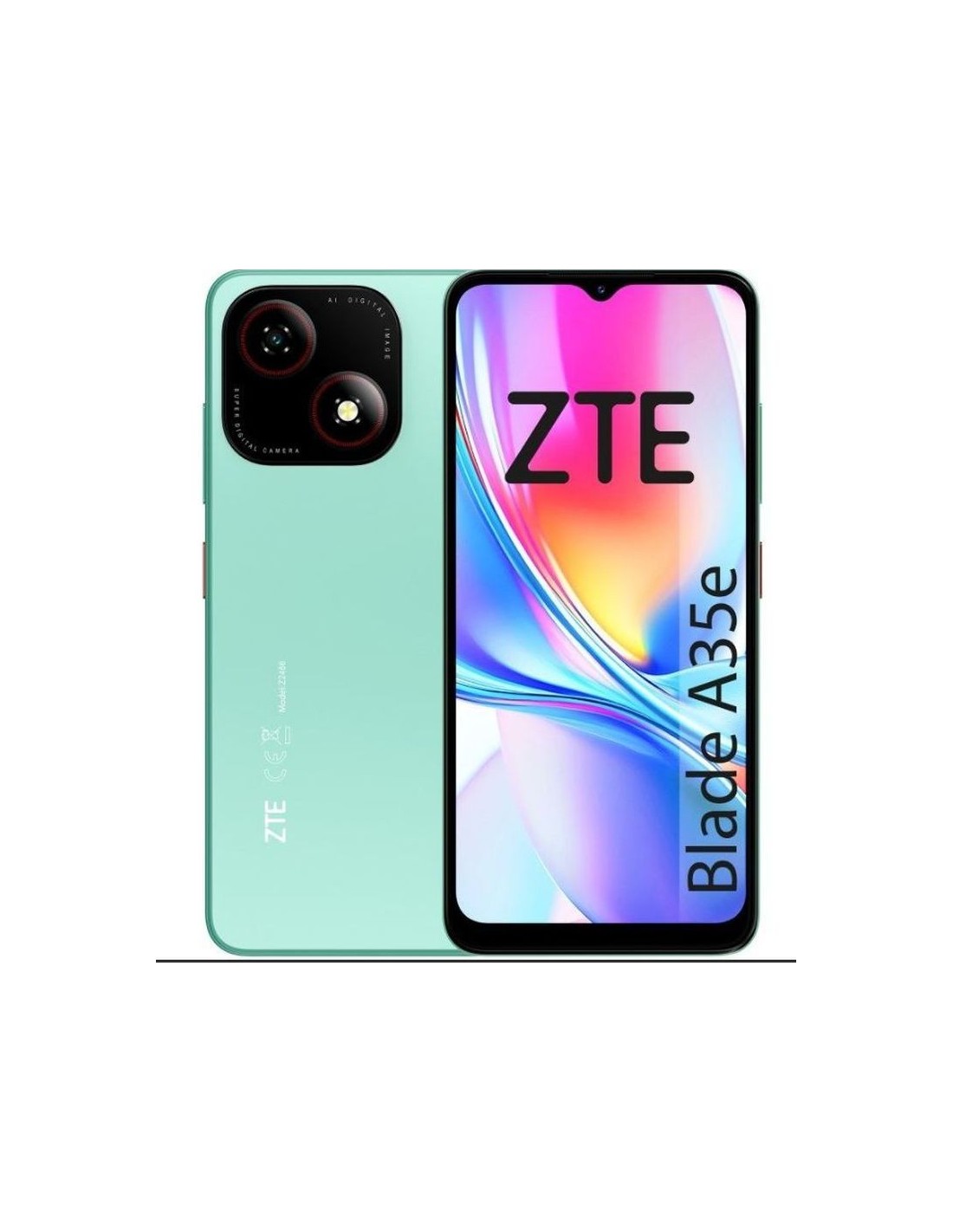 · 2GB RAM (+2GB virtual RAM). The RAM is virtually expandable using part of the ROM memory. · 32GB of ROM expandable up to 1TB via Micro SD Rear Camera: 8MP AF Front Camera: 5MP FF Video: Rear 1080p 30fps USB-C 2.0, OTG, 3.5mm Jack port Dual SIM, Triple Slot: NanoSIM + NanoSIM + MicroSD 4G: B1/B3/B5/B7/B8/B20/B28/B38/B40/B41 3G: B1/B2/B5/B8 2G: B2/B3/B5/B8 (Quad-band) · Silver Gray · Ice Green ZTE Blade A35e, TPU Cover, Screen Protector, USB-C Cable, SIM tray ejector, User manual, Warranty Card UNISOC SC9863A Octa-core 1.6GHz Android 14 Go (Android U Go) 32bit 6.52 HD 16.7 million colors Refresh rate: 90Hz Resolution: 1600x720px 5000mAh 10W Charge Dim: 163.94 x 75.7 x 85mm Weight: 185g Bluetooth 5.2, GPS/Glonass/Galileo, WiFi 2.4GHz, 802.11 b/g/n, Facial recognition,