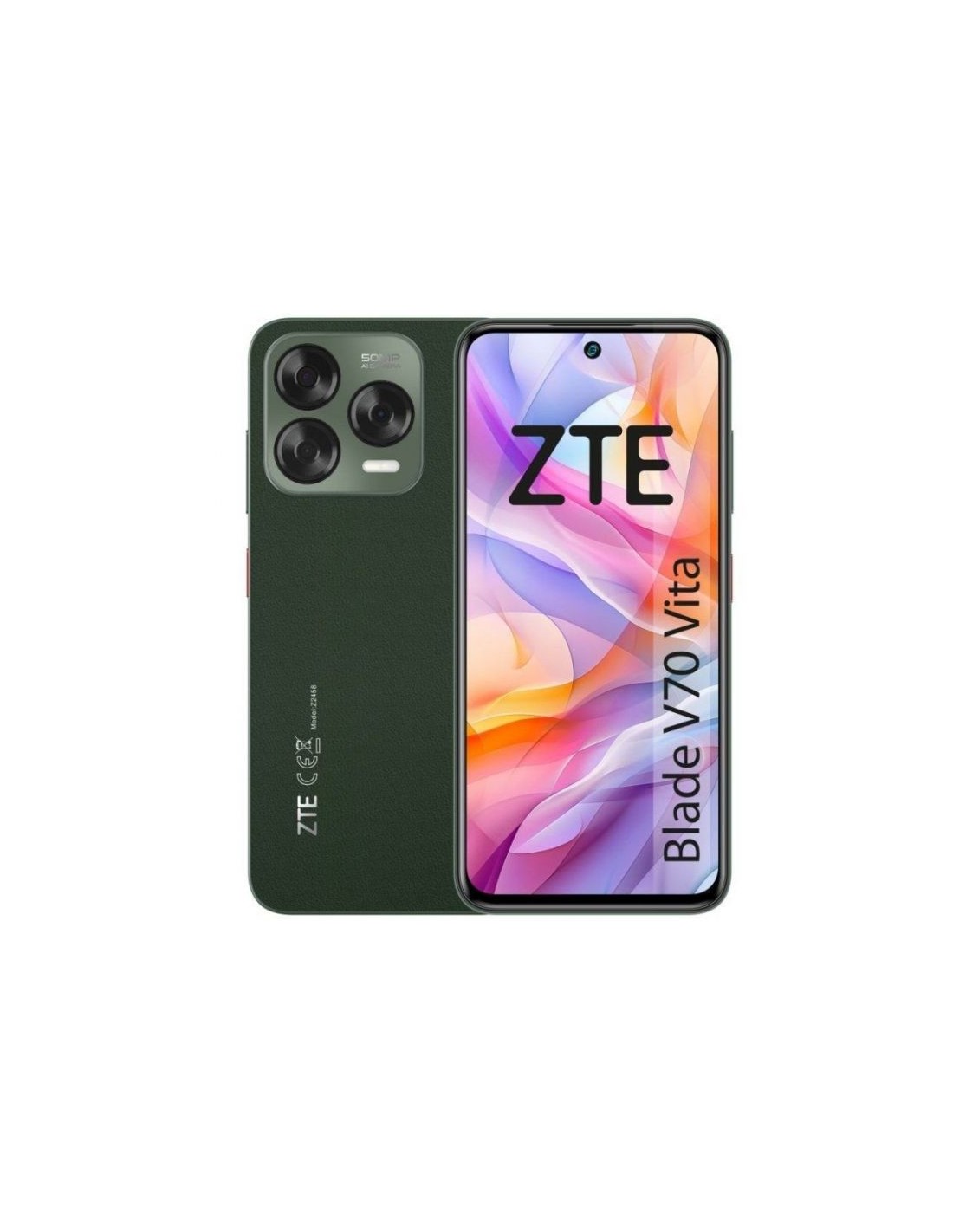 8GB RAM (+12GB virtual RAM). The RAM is virtually expandable using part of the ROM memory. 256GB ROM eMMC 5.1 expandable up to 1TB via microSD. - Main 50MP AF + Depth 2MP FF + AI sensor Front Camera: 16MP FF Video: Rear 1080p 30fps USB-C 2.0, OTG, 3.5mm jack port Dual SIM, Triple slot: NanoSIM + NanoSIM + microSD Dark Grey Dark Green ZTE Blade V70 Vita, TPU cover, screen protector, USB-C cable, SIM ejector pin, User Guide, Warranty card Unisoc T606 Octa-core 1.6GHz Android 14 6.7 HD+ IPS, 550nits Resolution: 720*1600 Refresh Rate: 120Hz 16.7 million colors Typical value: 5000mAh 18W Fast Charge \¿ Dim: 165.8 x 77.1 x 8.2mm Weight: 206g NFC, Side fingerprint, Compass, GPS/Galileo, WiFi 2.4GHz+5GHz, 802.11 a/b/g/n/ac, Bluetooth 5.2, DTS:X Ultra Sound, Accelerometer, Proximity sensor, Light sensor, Others Gyroscope, Dual Mic, VoLTE, VoWiFi. AI Magic Photos AI Assistant