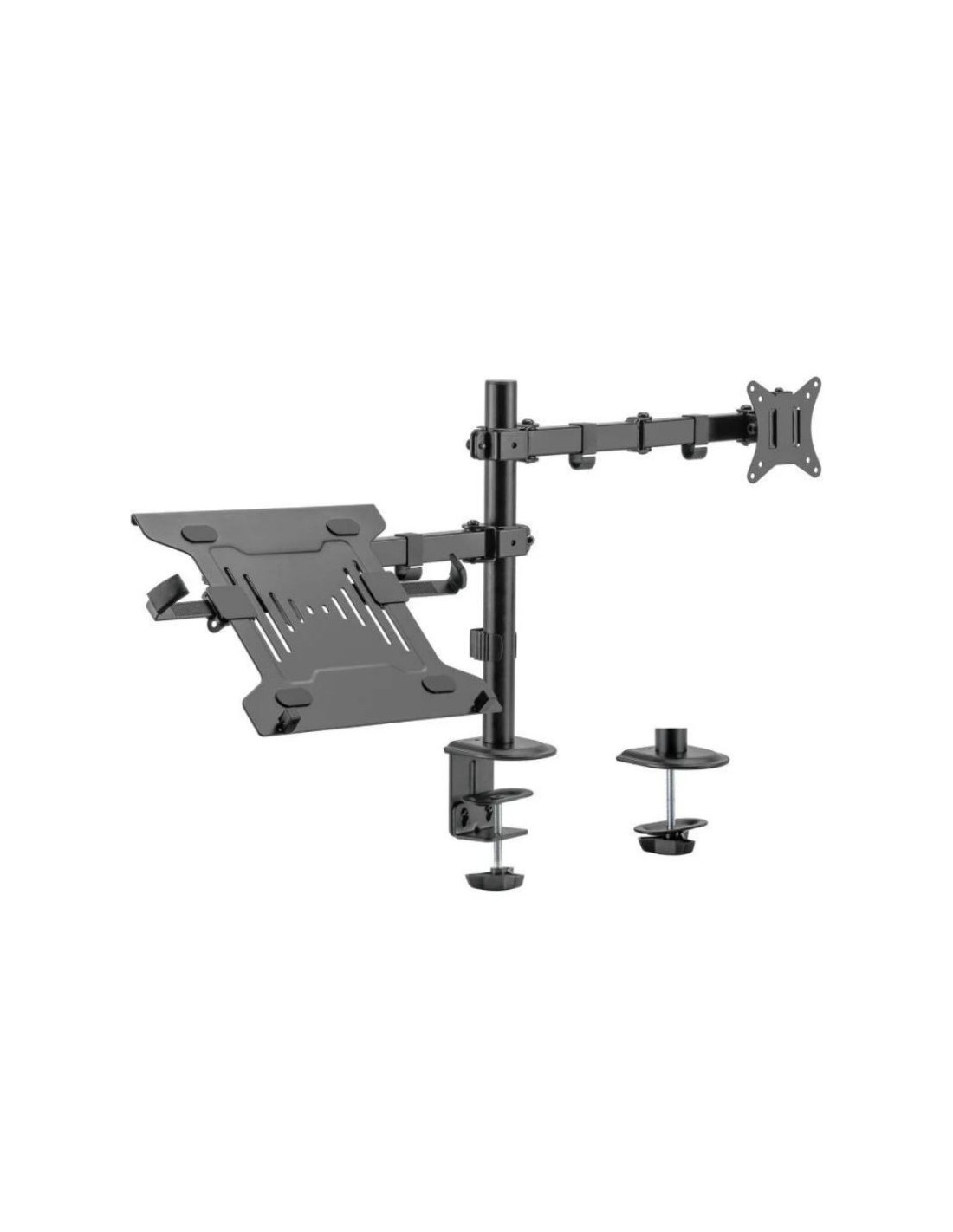 Especificaciones: Soporte de mesa giratorio e inclinable para porttil y monitor/TV (3 pivotes, 2 brazos) de 17-32 Fabricado con acero de alta resistencia y pintado con pintura electrosttica para un acabado perfecto. Se permite la instalacin en la mesa a travs de abrazadera o tornillo pasante Destacamos su fcil instalacin y ajuste, muy cmodo para el uso diario. VESA Mximo: 100x100mm (Compatible con VESA de 75x75, 100x100mm) Ancho de porttil soportado: 240-420mm Carga Mxima: 9kg Angulo de Inclinacin: -45 / +45 (depende de la instalacin y del espacio disponible) Angulo mximo de giro: -90 / +90 (depende de la instalacin y del espacio disponible) ngulo mximo de rotacin: -180 / +180 (depende de la instalacin y del espacio disponible) Brazo articulado para un ajuste fcil y cmodo. Sistema de gestin de cables Color: Negro Contenido 1 x Soporte de mesa para porttil y monitor/TV, 1 x Kit de montaje (No incluye herramientas), 1 x Manual de instrucciones multi idioma