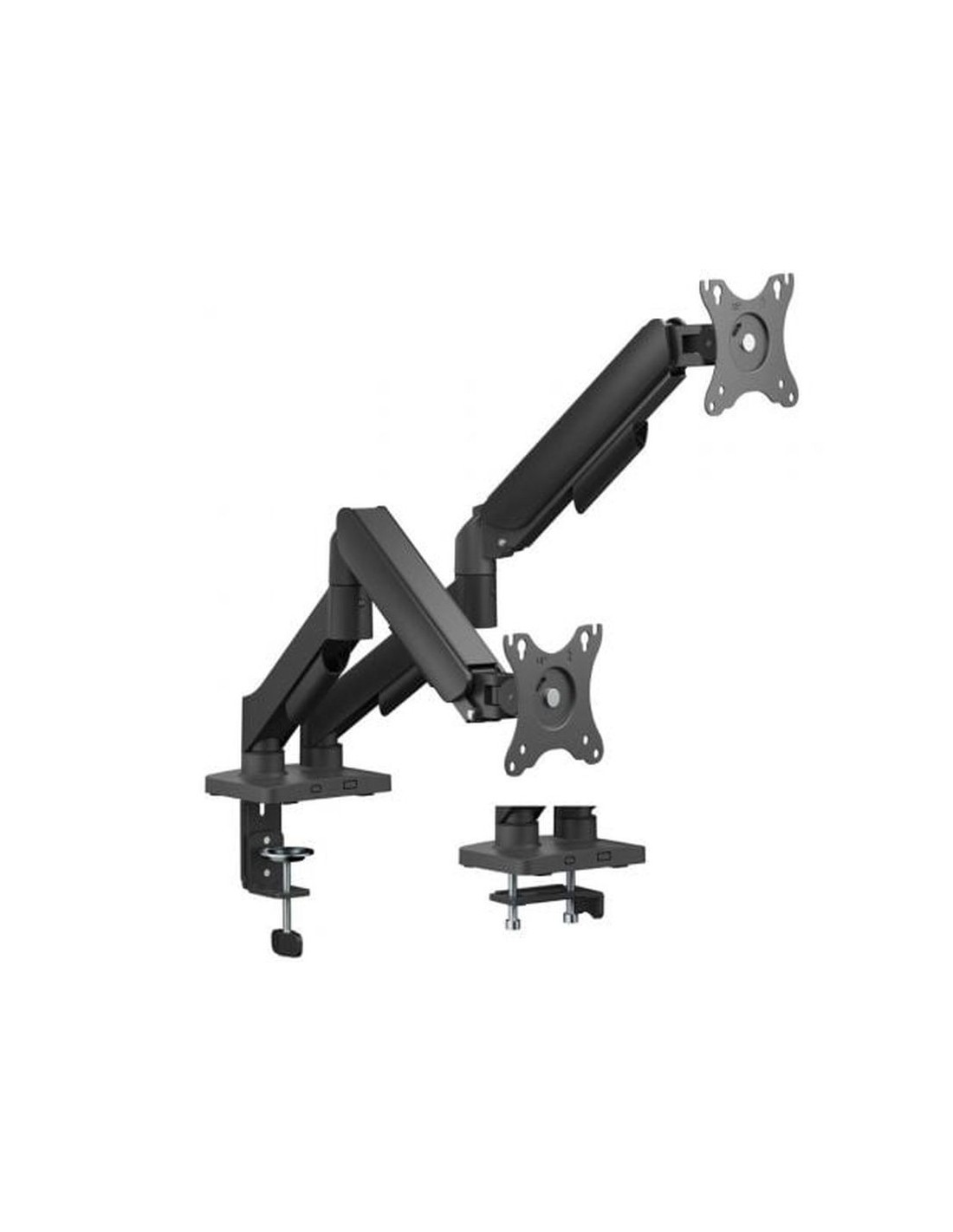 AISENS - Soporte de Mesa Eco Contrapeso Giratorio e Inclinable para Monitor/TV (17-32) Tipo: Soporte de mesa profesional con contrapeso, giratorio e inclinable con 3 pivotes y 2 brazos Compatibilidad de tamao: 17-32 Material: Acero de alta resistencia con pintura electrosttica para mayor durabilidad Instalacin: Se puede fijar a la mesa mediante abrazadera o tornillo pasante Gestin de cables: Orificios en el tubo para el paso interno de los cables Ajuste cmodo: Brazo articulado con muelle para una regulacin sencilla Especificaciones Tcnicas VESA Mximo: 100x100 mm Compatible con VESA: 75x75, 100x100 mm Carga mxima: 9 kg por brazo Rango de peso soportado por brazo: 2-9 kg (El peso del monitor debe estar dentro de este rango para un funcionamiento adecuado) ngulos de ajuste: Inclinacin: -90 / +90 (Depende de la instalacin y espacio disponible) Giro: 360 (Depende de la instalacin y espacio disponible) Rotacin: 180 (Depende de la instalacin y espacio disponible) Distancia entre mesa y pantalla: Ajustable entre 165 y 415 mm (Depende de la instalacin y espacio disponible) Color: Negro Contenido de la Caja 1 x Soporte de mesa para monitor/TV 1 x Kit de montaje (No incluye herramientas) 1 x Manual de instrucciones multilinge
