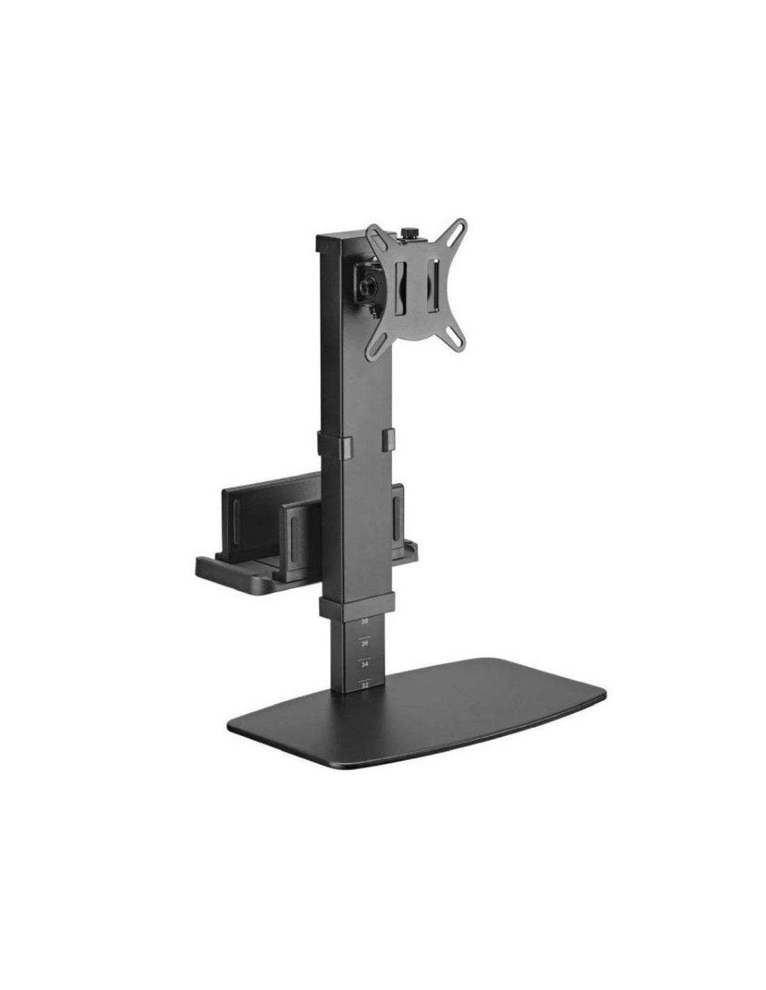 AISENS - SOPORTE DE MESA ECO GIRATORIO E INCLINABLE PARA MONITOR/TV Y MINI PC 8KG DE 17-32, NEGRO Especificaciones: Soporte de mesa eco giratorio e inclinable para monitor/TV y mini PC de 17-32 Estilo sobremesa, no se necesita anclar el soporte en el tablero de la mesa. Este soporte para monitor cuenta con una caracterstica adicional que lo hace an ms prctico: un soporte para mini PC en su parte posterior. De esta manera, no solo podremos elevar la pantalla a una altura cmoda, sino que tambin tendremos ms espacio libre en nuestra mesa para trabajar de manera ms eficiente. Es una forma prctica y ordenada de mejorar nuestro espacio de trabajo! Fabricado con acero de alta resistencia y pintado con pintura electrosttica para un acabado perfecto. Destacamos su fcil instalacin y ajuste, muy cmodo para el uso diario. VESA Mximo: 100x100mm (Compatible con VESA de 75x75, 100x100mm) Carga Mxima: 8kg Angulo de Inclinacin: -20 / +50 (depende de la instalacin y del espacio disponible) Angulo mximo de giro: -30 / +30 (depende de la instalacin y del espacio disponible) ngulo mximo de rotacin: 180 (depende de la instalacin y del espacio disponible) Distancia entre mesa y pantalla: ajustable entre 320 y 500mm (depende de la instalacin y del espacio disponible) Nota: Este soporte cuenta con un sistema de subida y bajada de tipo carraca. Para subir, simplemente sube el monitor hasta la posicin que le guste. Para bajar, hay que subir el monitor hasta la mxima posicin, y a continuacin, le permitir bajar el monitor. Sistema pasacables: dispone de unos ganchos para poder gestionar los cables Color: Negro Contenido: 1 x Soporte de mesa para monitor/TV 1 x Kit de montaje (No incluye herramientas) 1 x Manual de instrucciones multi idioma