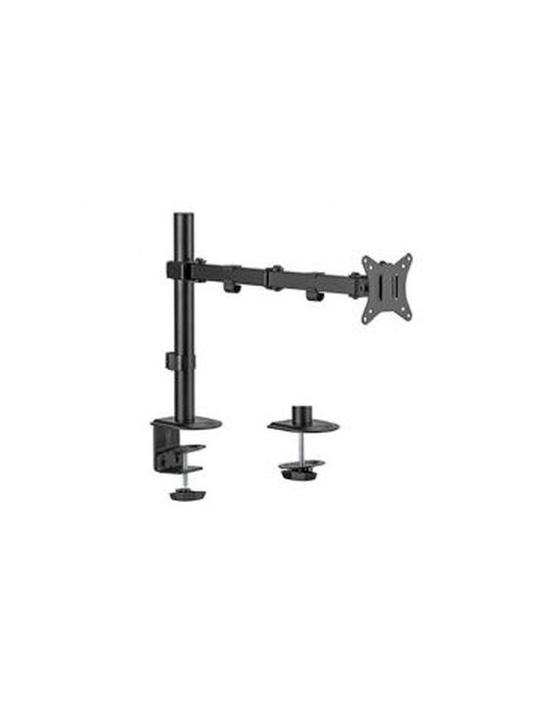 Soporte de escritorio para monitor con brazo para un solo monitor El brazo permite girar, extender, retraer o inclinar la pantalla y permite rotar la pantalla del modo horizontal al vertical, etc. Funciona con casi cualquier monitor LCD (mx. 32) Abrazadera o arandela de escritorio resistente para una fijacin fcil y segura en su escritorio Gestin de cables integrada para un espacio de trabajo organizado y ordenado Compatible con VESA (100 x 100 mm y 75 x 75 mm) Especificaciones Material: acero, plstico Acabado superficial: recubrimiento en polvo Color: negro textura fina Ajuste el tamao de la pantalla: 17 - 32 Capacidad de peso: 9 kg Compatible con Vesa: 100x100, 75x75 mm Rango de inclinacin: +45 ~ -45 Rango de giro: +90 ~ -90 Rotacin de pantalla: +180 ~ -180 Instalacin: ojal, abrazadera Espesor de escritorio sugerido: abrazadera: 10 ~ 85 mm. ojal: 10 ~ 40 mm Gestin de cables: s Peso neto: 2,7 kg