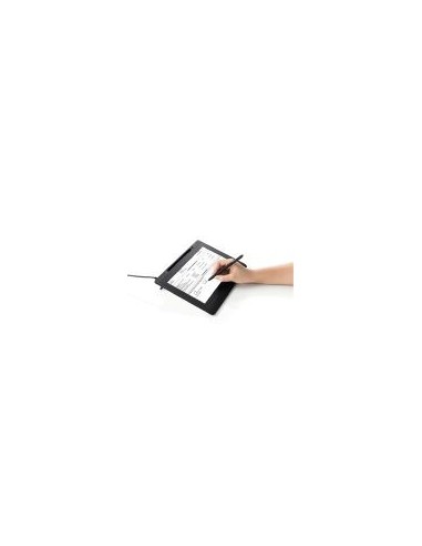DTU-1141B DTU-1141B es la solución de documentos electrónicos y firma digital líder de la cartera de productos de Wacom. Se trata de un producto exclusivo que combina una pantalla LCD de 10,1 y resolución full HD, cifrado de última generación y alimentación de un solo cable USB para brindarle al usuario una experiencia ideal de visualización y firma de documentos. Funciones y beneficios de DTU-1141B Panel LCD a color de 10,1 con resolución full HD (1920 x 1080) para ver y firmar documentos. Compatibilidad con 6 resoluciones diferentes de 800 x 600 a 1920 x 1080. Lápiz inalámbrico y sin pilas patentado con 1024 niveles de sensibilidad a la presión para la mejor experiencia de firma y escritura. Cifrado RSA/AES de última generación para realizar transacciones seguras. La unidad recibe alimentación de un solo cable USB para reducir el desorden en cualquier entorno de trabajo. La superficie endurecida y mate ofrece una mayor durabilidad y una visualización más fácil en diversas condiciones de iluminación, más una magnífica sensación similar al papel. Los orificios de montaje VESA permiten utilizar brazos y soportes de otros fabricantes. La unidad DTU-1141B ofrece todas las funciones necesarias para ser considerada la mejor solución de documentos electrónicos. La impresionante pantalla LCD de 10,1 es compatible con diversas resoluciones, incluida la resolución full HD, para ofrecer una experiencia increíble con cualquier aplicación de software comercial. Por motivos de seguridad, la unidad DTU-1141B incluye cifrado de última generación y una identificación única de hardware para identificar la unidad individual utilizada para firmar. Cuatro ExpressKeys táctiles permiten acceder fácilmente a los atajos de teclado más utilizados. Al igual que todos los productos Wacom, la unidad DTU-1141B es sumamente duradera y se puede integrar con facilidad en cualquier entorno existente. El lápiz es inalámbrico y sin pilas, lo que hace que sea liviano y fuerte. La unidad se puede utilizar sobre una superficie plana, a un ángulo conveniente con el soporte integrado o montada en un brazo o soporte de otro fabricante con el montaje VESA. Comunícate con nosotros para obtener más información sobre cómo la unidad DTU-1141B puede adaptarse a tu flujo de trabajo. Especificaciones Dimensiones generales, sin soporte283 x 210 x 11 mm Peso0,80 kg InterfazUSB 2.0 Soporte15° ExpressKeys4 Puertos USB para usuario0 Tamaño de pantalla10.1 Resolución nativa1920 x 1080 Relación de aspecto16:9 Brillo normal200 cd/m² Relación de contraste1000:1 Índice de respuesta25 ms Ángulo de visión85°/85°, 85°/85° Tecnología de lecturaResonancia electromagnética (EMR) Niveles de presión del lápiz1024 Resolución de las coordenadas2540 lpp Velocidad de lectura del lápiz200 puntos/s n/d Cordón de sujeciónSí Requisitos del sistemaWindows 10/8.1/7 (32-bit, 64-bit), Mac OS X (10.11, 10.12, & 10.13 https://www.wacom.com/es-es/products/dtu-1141