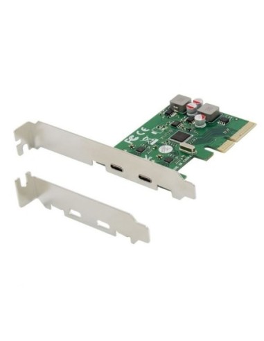 EMRICK08G Tarjeta PCIe de 2 puertos USB 3.2 Gen 2 tipo C, autoalimentada Número de modelo EMRICK08G SKU 110014107101 Agregue 2 puertos USB-C a su computadora de escritorio USB 3.2 Gen 2 supervelocidad (10 Gbps) No requiere fuente de alimentación adicional Admite intercambio en caliente Soporta UASP Detalles Esta tarjeta PCI Express le permite agregar fácilmente 2 puertos SuperSpeed ??USB 3.2 Gen 2 adicionales a su computadora de escritorio. Tiene una velocidad de datos máxima de 10 Gbs, lo que lo hace muy rápido y capaz de copiar archivos o documentos grandes hacia y desde su computadora de escritorio. Simplemente coloque la tarjeta PCI Express USB 3.2 Gen 2 en la ranura Express Card de su computadora, instale los controladores incluidos y ¡listo! *No es compatible con la ranura PCI-Express x1 Más información Más información Sistemas operativos compatibles Windows 7 Windows 8 Windows 8.1 Windows 10 Linux kernel 2.6 y superior Configuración del puerto 2 x USB-C Interfaz de host PCIe x4 Versión PCI PCIe 3.0 Peso del producto (kg) 0.039 Ancho del producto (mm) 58 Profundidad del producto (mm) 80 Altura del producto (mm) 20 Color Verde EAN 4015867227992 Número de modelo EMRICK08G Contenidos del paquete EMRICK08G Soporte de perfil bajo CD del controlador Guía de instalación rápida multilingüe El consumo de energía Corriente máxima 3A/cada puerto https://www.conceptronic.net/conceptronic_en/emrick08g-2-port-usb-3-2-gen-2-type-c-pcie-card-self-powered-110014107101