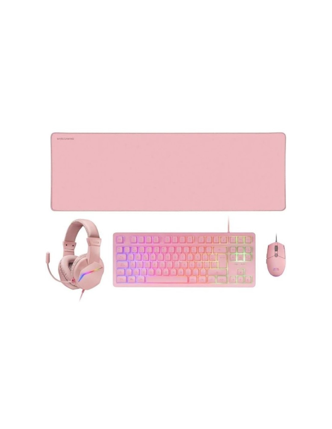 OMBO GAMING 4EN1 MCP-RGB3 Pack gaming premium 4en1: Teclado TKL con tecnología H-Mech RED, ratón ultraligero RGB Flow de 3200 DPI con switches HUANO, auriculares con iluminación FRGB Rainbow y almohadillas con cancelación de ruido, y alfombrilla XXL con base antideslizante. Compatible con múltiples plataformas, incluyendo PC y consolas, disfruta de sesiones de alto rendimiento. Disponible en negro, blanco y rosa. Combo gaming 4en1. Domina el juego Teclado TKL H-MECH Ratón ultra ligero Auriculares RGB Rainbow Alfombrilla XXL PACK GAMING TODO EN UNO Prepárate para una experiencia gaming sin igual con el combo MCP-RGB3. Este combo incluye todo lo que necesitas para alcanzar la victoria en tus partidas más intensas. Descubre cada uno de sus componentes y lleva tu rendimiento al siguiente nivel. TECLADO TKL H-MECH Sumérgete en la acción con nuestro teclado TKL equipado con tecnología H-Mech RED, que combina la sensación rápida y precisa de los switches mecánicos con la suavidad y la durabilidad de los teclados de membrana. ¡Experimenta una respuesta inigualable en cada pulsación y domina el campo de batalla! ILUMINACIÓN LED FRGB El sistema de iluminación LED FRGB te permite combinar tu teclado con tu configuración a la perfección. Dale vida a tu setup gaming con una explosión de colores y crea un ambiente único en cada partida. RATÓN RGB FLOW El ratón RGB ultraligero y compacto del combo MCP-RGB3 cuenta con una vibrante iluminación RGB Flow dinámica y sensor óptico de hasta 3200 DPI, permitiéndote cambiar entre 800/1200/1600/3200 DPI con su botón de cambio on-the-fly. Crea un ambiente único en tu espacio gaming y disfruta de un rendimiento excepcional en cada partida, manteniendo el control total de tus movimientos. LIGEREZA Y PRECISIÓN Con su diseño ultraligero y ergonómico, este ratón está equipado con switches HUANO que proporcionan un clic preciso y duradero en cada pulsación. Su diseño ergonómico y su precisión milimétrica te proporcionarán la comodidad y control óptimo que necesitas durante largas sesiones de juego AURICULARES FRGB RAINBOW. SONIDO INMERSIVO Equipados con iluminación FRGB Rainbow, drivers de neodimio de 50 mm y un micrófono flexible que proporciona un sonido claro y nítido, disfrutarás de un sonido HI-FI ultra-bass inmersivo y una comunicación clara en equipo. Además, los auriculares cuentan con almohadillas con cancelación de ruido pasiva que te aislarán del exterior para que puedas concentrarte plenamente en el juego. ALFOMBRILLA XXL. ESPACIO Y RENDIMIENTO La alfombrilla tamaño XXL (780x300x4mm) con base de caucho natural y bordes reforzados proporciona la superficie perfecta para unos movimientos precisos. Olvídate de preocuparte por el espacio y la estabilidad, ya que esta alfombrilla te ofrece una superficie amplia y una base antideslizante para asegurar un rendimiento constante en tus partidas. COMPATIBILIDAD MULTIPLATAFORMA El combo MCP-RGB3 es compatible con una amplia gama de plataformas de juego, incluyendo Windows, PS4, PS5, XBOX ONE, XBOX SERIES X-S, y Mac. Disfruta de una experiencia sin preocupaciones ni restricciones. CARACTERÍSTICAS TÉCNICAS TECLADO Peso 471g Dimensiones 369x141x32mm Diseño TKL Material teclado ABS Color Negro/Blanco/Rosa Iluminación FRGB Rainbow Tecnología Membrana Tipo de switch H-Mech Longitud del cable 150cm Tipo de cable Recubrimiento de goma Conector USB 2.0 Anti-ghosting Sí Compatibilidad de S.O. Windows, *Linux, *Mac, PS4, PS5, XBOX ONE, XBOX SERIES X-S, Switch (*Algunas funciones pueden no funcionar debido a limitaciones del sistema operativo) RATÓN Peso 70g Dimensiones 116X62X38mm Ergonomía Diestro Botones 6 Iluminación RGB flow Acabado Antideslizante Materiales ABS Color ratón Negro/Blanco/Rosa Color botones Negro/Blanco/Rosa Sensor Óptico DPI 800/1200/1600/3200 Tipo de cable PVC reforzado Longitud del cable 150cm Conector USB Compatibilidad de S.O. Windows, Linux, Mac, PS4, PS5, XBOX ONE, XBOX SERIES X-S ALFOMBRILLA Dimensiones 780x300mm Peso 440g Material superficie Nanotextil Material base Caucho natural Bordes Reforzados Grosor 4mm AURICULARES Dimensiones 156x200x90mm Peso 184g Iluminación FRGB Rainbow Color Negro/Blanco/Rosa Tipo de cable Recubrimiento de goma Diadema Ajustable Longitud del cable 180cm Conector Jack 3.5mm (Audio) + USB (LED Power) Control de volumen Yes Dimensiones (driver) Dynamic 50mm neodymium Rango de frecuencia (driver) 18Hz-20KHz Sensibilidad (driver) 108dB ± 3dB Impedancia (driver) 32O Direccionalidad (micrófono) Omnidireccional Impedancia (micrófono)