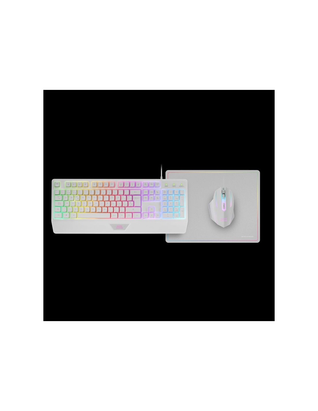 Combo Gaming 3en1 MCP124 El Combo Gaming 3en1 MCP124 es la elección definitiva para los gamers que buscan la combinación ideal entre rendimiento y estilo. Incluye un teclado ergonómico H-Mech, un ratón RGB con switches HUANO y precisión total, y una alfombrilla nanotextil con diseño rainbow. Compatible con una amplia gama de plataformas, incluyendo PC y consolas, el Combo Gaming MCP124 te permite disfrutar de sesiones de alto rendimiento sin importar dónde juegues. El Combo Definitivo para Gamers Exigentes Teclado Ergonómico H-MECH con reposamuñecas Ratón RGB Máxima precisión Alfombrilla Nanotextil Compatibilidad multiplataforma Pack Gaming 3en1 Transforma tu experiencia de juego con el Combo Gaming MCP124, diseñado para los gamers más exigentes. Con su teclado ergonómico con iluminación RGB, su alfombrilla en nanotextil con diseño Rainbow, y su ratón gaming RGB de alta precisión, cada componente está cuidadosamente diseñado para brindarte el máximo rendimiento y estilo, asegurando que tengas todo lo necesario para llevar tu juego al siguiente nivel. Teclado Gaming Ergonómico H-Mech El teclado gaming de tamaño completo del combo MCP124 incluye un reposamuñecas ergonómico integrado que asegura una experiencia de juego cómoda y eficiente, permitiéndote disfrutar de largas sesiones sin fatiga. Equipado con tecnología H-Mech, este teclado combina la suavidad y durabilidad de los teclados de membrana con la respuesta rápida y precisa de los switches mecánicos, ofreciendo un rendimiento óptimo para cualquier tipo de juego. Iluminación LED FRGB La iluminación RGB del teclado ofrece un espectacular despliegue de colores RGB fijos que eleva tu espacio de juego y mejora la visibilidad en cualquier entorno. Disfruta de una atmósfera inmersiva que transforma cada sesión de juego en una experiencia única.