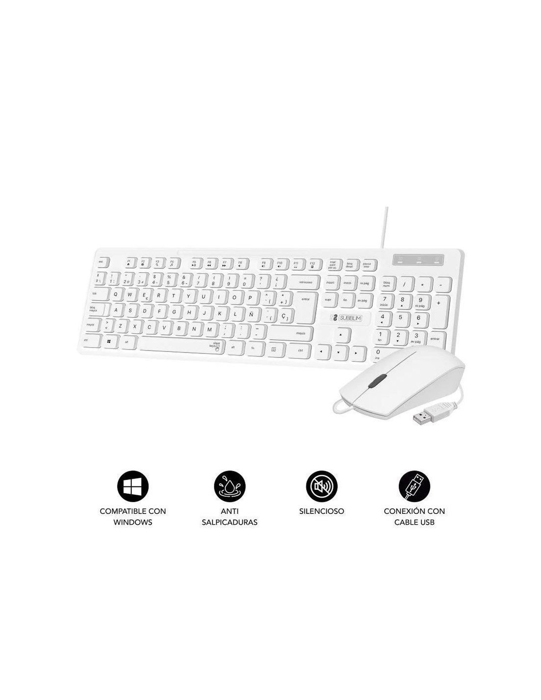 La combinación de Teclado y ratón Combo Business Slim Silencioso con cable USB, te proporciona una precisa y confortable escritura gracias a su ergonomía en las teclas planas de bajo perfil y la forma del ratón contorneada. Resulta una combinación para conseguir una mayor productividad creando un espacio de trabajo ideal. Todo ello sin ruidos incómodos gracias a la tecnología SilentKeys utilizada en las teclas y los botones. Teclas Planas Teclas planas contorneadas y de perfil bajo para una cómoda escritura. Tecnología de membrana pensada para obtener la máxima eficiencia en cada pulsación además de gran estabilidad y precisión. Resistente a salpicaduras Resistente a los derrames o vertidos de líquidos y a prueba de salpicaduras, con lo que no tienes que preocuparse por arruinar tu inversión de forma accidental. Diseño delgado y completo Teclado de diseño delgado y elegante con solo 23mm de grosor con soportes de inclinación ajustables que hace más agradable un uso continuado. Incorpora teclado numérico para introducir datos más fácilmente en hojas de cálculo o programas de contabilidad y finanzas Conector USB 100%Plug&Play Conecta el teclado y el ratón a los puertos USB de tu ordenador y comienza a utilizarlos inmediatamente sin controladores o descargas adicionales Ratón Ergonómico con cable Ergonómico, compacto, elegante y con funcionamiento de los botones silencioso. Diseñado para adaptarse cómodamente a la mano izquierda o derecha con una máxima precisión de hasta 1200 DPI TECLADO Conexión por cable USB Plug & Play con máxima protección y seguridad Teclas Ergonómicas de bajo perfil y con forma cuadrada de esquinas redondeadas para una máxima comodidad y precisión El teclado tiene un perfil plano que añade elegancia al escritorio a la vez que permite mantener las manos en una posición más cómoda y natural Resistente a los derrames o vertidos de líquidos y a prueba de salpicaduras Pulsaciones Silenciosas y Suaves para no molestar a los que están a tu alrededor Disposición de tamaño completo (104 Teclas) con Teclado Numérico y separación entre las teclas para facilitar la limpieza 12 teclas de Función y Accesos directos Patas traseras regulables en altura y topes de goma antideslizantes La longitud del cable de 150cm te permitirá posicionar el teclado en cualquier lugar del escritorio RATÓN Ratón Óptico con cable USB de 3 botones con diseño ergonómico Botones de control Silenciosos, evitando los incómodos sonidos de funcionamiento Resolución/velocidad de hasta 1200 DPI Especificaciones Uso recomendado Universal Interfaz del dispositivo USB Interruptor del teclado Interruptor de membrana Diseño de teclado QWERTY Idioma del teclado Español Formato del teclado De tamaño completo Teclado numérico Si Teclado, cantidad de teclas 104 Vida útil de las teclas del teclado 3 millón de caracteres Perfil de teclado Perfil bajo Teclas de Windows Si Teclas multimedia Si Tecnología de conectividad Alámbrico Teclas silenciosas Si Tecnología de las teclas del teclado Émbolo Base antiderrapante Si Certificación CE & ROHS Estilo de teclado Derecho Teclado de tamaño completo Si Diseño de plancha ergonómico Si Altura de teclado ajustable Si Color del producto Blanco Material ABS sintéticos Conector USB USB tipo A Longitud de cable 1,5 m Alimentación USB Consumo de energía 100 mA Ratón incluido Si Factor de forma Ambidextro Tecnología de detección de movimientos Óptico Resolución de movimiento 1200 DPI Cantidad de botones 3 Tipo de botones Botones presionados Silencioso Si Rueda de desplazamiento Si Tipo de desplazamiento Rueda Longitud del cable del ratón 1,5 m Vida útil de las teclas del ratón 3 millón de caracteres Número de ruedas de desplazamiento 1 Sistema operativo Windows soportado Windows 10,Windows 7,Windows 8,Windows Vista,Windows XP Cumplimiento de sostenibilidad Si Certificados de sostenibilidad CE, RoHS Dimensiones de teclado (Ancho x Profundidad x Altura) 430 x 132 x 23 mm Peso del teclado 400 g Dimensiones del ratón (Ancho x Profundidad x Altura) 111 x 65 x 33 mm Peso del ratón 60 g