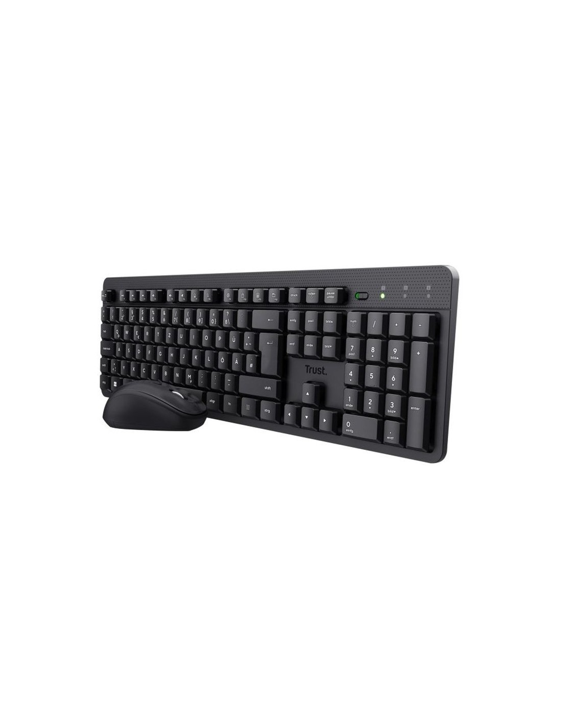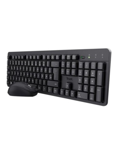 Teclado Y Mouse Trust Wireless Tkm-360 Silencioso 25356 Trust TKM-360, Inalámbrico, RF inalámbrico, Interruptor de membrana, QWERTY, Negro, Ratón incluido Pack teclado y ratón inalámbricos y silenciosos Pack de teclado y ratón inalámbricos y silenciosos para trabajar cómodamente durante horas Trust TKM-360. Formato del teclado: Completo (100%), Tecnología de conectividad: Inalámbrico, Interfaz del dispositivo: RF inalámbrico, Interruptor del teclado: Interruptor de membrana, Diseño de teclado: QWERTY, Uso recomendado: Oficina. Color del producto: Negro. Ratón incluido Teclado Uso recomendado Oficina Tecnología de conectividad Inalámbrico Interfaz del dispositivo RF inalámbrico Interruptor del teclado Interruptor de membrana Diseño de teclado QWERTY Idioma del teclado Español Dispositivo apuntador No Formato del teclado Completo (100%) Teclado numérico Si Perfil de teclado Perfil bajo Teclas de acceso directo Si Teclas multimedia Si Teclas silenciosas Si Interruptor de encendido/apagado integrado Si Diseño Retroiluminación No Altura de teclado ajustable Si Color del producto Negro Coloración de superficie Monocromo Material Acrilonitrilo butadieno estireno (ABS) Funciones de protección Resistente a derrames Indicadores LED Si Control de energía Alimentación Batería Teclado tipo de batería AAA Número de pilas (teclado) 2 Tecnología de batería Alcalino Ratón Ratón incluido Si Factor de forma Ambidextro Tecnología de detección de movimientos Óptico Resolución de movimiento 1600 DPI Tipo de botones Botones presionados Rueda de desplazamiento Si Tipo de desplazamiento Rueda Direcciones de desplazamiento Vertical Ratón tipo de batería AA Tecnología de la batería del ratón Alcalino Número de pilas (ratón) 1 Interruptor de encendido/apagado del ratón Si Requisitos del sistema Sistema operativo Windows soportado Windows 10, Windows 11 Sistema operativo MAC soportado Mac OS X 11.0 Big Sur, Mac OS X 12.0 Monterey, Mac OS X 13.0 Ventura Otros sistemas operativos soportados ChromeOS Peso y dimensiones Dimensiones de teclado (Ancho x Profundidad x Altura) 422 x 136 x 37 mm Peso del teclado 473 g Contenido del embalaje Número de productos incluidos 2 pieza(s) Receptor incluido Si Interfaz de receptor inalámbrico USB tipo A Tipo de receptor Nanorreceptor Pilas incluidas Si Manual de usuario Si https://www.trust.com/es/product/25361-tkm-360-wireless-keyboard-mouse-us