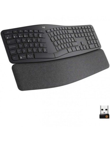 DIMENSIONES Altura: 233 mm Anchura: 456 mm Profundidad: 48 mm Peso: 1160 g REQUISITOS DEL SISTEMA Conectividad Bluetooth® 5.0 (Requiere compatibilidad con Bluetooth y HID de teclado) Receptor USB (Requiere un puerto USB A) Conexión Bluetooth Bluetooth de bajo consumo Windows 8,10 o posterior macOS 10.13 o posterior Receptor USB Windows 7,8,10 o posterior macOS 10.13 o posterior ESPECIFICACIONES TÉCNICAS Compatibilidad de conexión Receptor USB de 2,4 GHz Tecnología Bluetooth de bajo consumo Software compatible Logitech Options en macOS 10.11 y posterior, y Windows 7 y posterior Tipo de pilas 2 pilas AAA Radio de acción inalámbrico 10 m 2El radio de acción inalámbrico depende del entorno operativo y de la configuración de dispositivos. Cifrado inalámbrico 3Cifrado inalámbrico entre el teclado y el ordenador o el dispositivo móvil conectado. CONTENIDO DE LA CAJA Teclado ergonómico Receptor USB 2 pilas AAA Guía de inicio rápido INFORMACIÓN DE GARANTÍA Dos años de garantía de hardware limitada NÚMERO DE REFERENCIA Grafito Español (Qwerty): 920-010105 Grafito Dansk/ Norsk/ Svenska/ Suomalainen (Qwerty): 920-009168 Grafito Deutsch (Qwertz): 920-009167 Grafito Italiano (Qwerty): 920-010106 Grafito US International (Qwerty) : 920-010108 Grafito UK English (Qwerty): 920-010107 Grafito Suisse / Schweizer (Qwertz): 920-009874 Grafito Français (Azerty): 920-010104 https://www.logitech.com/es-es/ergo/k860-features.html