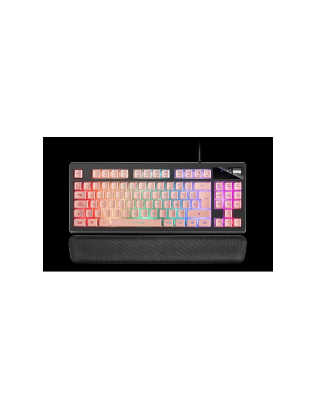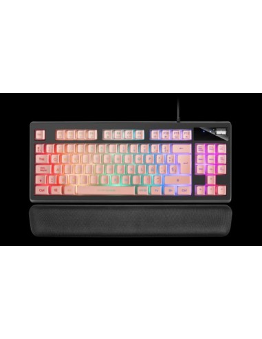 CARACTERÍSTICAS TÉCNICAS- Peso 736g + 266g (reposamuñecas) Dimensiones 370x152x37mm (reposamuñecas 380x65x22mm) Diseño TKL Material teclado ABS Color Negro Iluminación RGB Control, 9 efectos de iluminación Extras Control de volumen mediante rueda Tecnología Membrana Tipo de switch H-Mech Longitud del cable 180cm Conectores USB 2.0 Chapado en oro Programable Hardware Inalámbrico No Reposamuñecas Sí, extraíble, GEL Frecuencia de refresco - Anti-ghosting Si Software No Compatibilidad Windows/Linux/Mac/PS4/XBOX ONE/Switch Voltaje DC 5V Corriente 100mA Durabilidad 20 million https://es.marsgaming.eu/es/teclados/teclado-gaming-mkax_mkaxpes