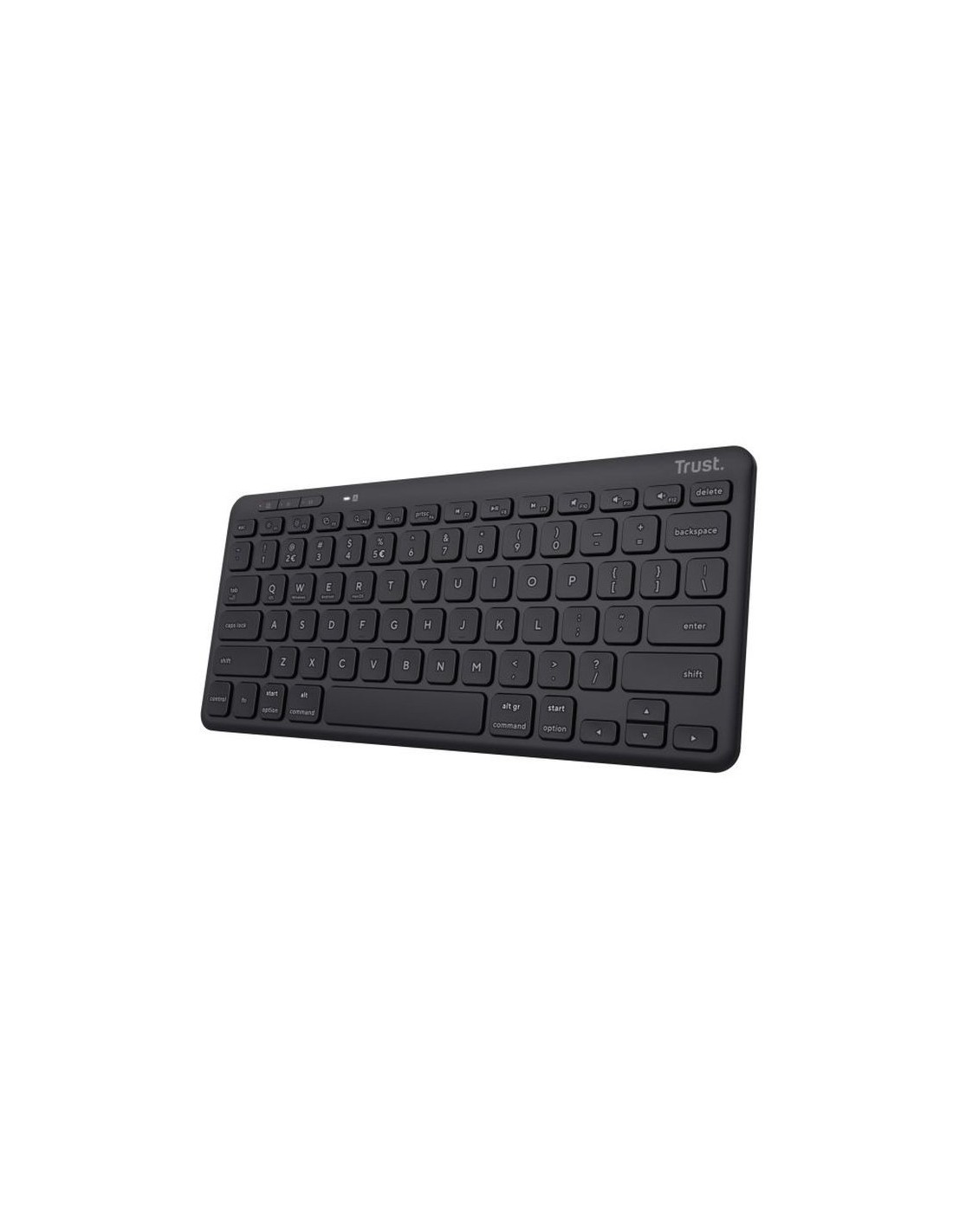 Teclado Trust Lyra Inalambrico Compacto Y Multidispositivo Negro Hecho Con Materiales Reciclados Trust Lyra, Mini, Inalámbrico y alámbrico, USB + RF Wireless + Bluetooth, Switch de tecla de tijera, QWERTY, Negro Lyra Teclado inalámbrico compacto Teclado inalámbrico compacto y multidispositivo que garantiza una conexión fácil y práctica; fabricado con materiales reciclados Triple conexión ¿Te gusta hacer varias cosas a la vez? A Lyra también. Gracias a la posibilidad de conectar hasta tres dispositivos a través del receptor USB y 2x Bluetooth, puedes escribir con total facilidad en el móvil, la tableta y el ordenador utilizando los tres botones. La clave para un trabajo más ecológico Adéntrate en el trabajo sostenible con Lyra. Fabricado con un 85 % de plásticos reciclados, y con un embalaje 100 % libre de plásticos. Aunque sea negro, Lyra también es ecológico. Horas extra Deja de preocuparte por las pilas: gracias a su batería recargable, este teclado funciona hasta 6 meses con una sola carga, y se puede recargar fácilmente mientras trabajas en solo dos horas. Compatible Lyra ha sido diseñado pensando en la comodidad, y por eso es compatible con Windows, iOS, iPadOS, MacOS, Android y Chrome OS, para que puedas usarlo con cualquier dispositivo. Perfil bajo Ideal para los más viajeros, o simplemente para quienes desean un teclado más pequeño. Lyra es compacto, está provisto de teclas de tijera de perfil bajo tipo portátil, y cuenta con patas de goma de altura regulable en 3 pasos, para ayudarte a trabajar en la oficina, en casa o allí donde te encuentres. Facilísimo Las teclas de acceso rápido te facilitan aun más las cosas, para que puedas realizar presentaciones, escribir y reproducir con solo pulsar un botón. Trust Lyra. Formato del teclado: Mini, Tecnología de conectividad: Inalámbrico y alámbrico, Interfaz del dispositivo: USB + RF Wireless + Bluetooth, Interruptor del teclado: Switch de tecla de tijera, Diseño de teclado: QWERTY, Uso recomendado: Oficina. Color del producto: Negro Teclado Uso recomendado Oficina Tecnología de conectividad Inalámbrico y alámbrico Interfaz del dispositivo USB + RF Wireless + Bluetooth Interruptor del teclado Switch de tecla de tijera Diseño de teclado QWERTY Idioma del teclado Español Dispositivo apuntador No Formato del teclado Mini Teclado numérico No Vida útil de las teclas del teclado 10 millón de caracteres Perfil de teclado Perfil bajo Compatibilidad multidispositivo Si Teclas de acceso directo Si Teclas multimedia Si Frecuencia de banda 2.4 GHz Versión de Bluetooth 5.0 Interruptor de encendido/apagado integrado Si Diseño Retroiluminación No Altura de teclado ajustable Si Color del producto Negro Coloración de superficie Monocromo Material Acrilonitrilo butadieno estireno (ABS) Indicadores LED Si Características Alcance inalámbrico 10 m Conector USB USB tipo A Control de energía Alimentación Batería, USB Teclado tipo de batería Batería integrada Número de pilas (teclado) 1 Tecnología de batería Polímero de litio Vida de batería en servicio 12 mes(es) Recargable Si Fuente de carga USB Tipo C Ratón Ratón incluido No Requisitos del sistema Sistema operativo Windows soportado Windows 10, Windows 11 Sistema operativo MAC soportado Mac OS X 10.15 Catalina, Mac OS X 10.15.3 Catalina, Mac OS X 11.0 Big Sur, Mac OS X 12.0 Monterey, Mac OS X 13.0 Ventura, Mac OS X 14.0 Sonoma Otros sistemas operativos soportados ChromeOS Peso y dimensiones Dimensiones de teclado (Ancho x Profundidad x Altura) 286 x 126 x 17 mm Contenido del embalaje Número de productos incluidos 1 pieza(s) Receptor incluido Si Interfaz de receptor inalámbrico USB tipo A Tipo de receptor Microrreceptor Pilas incluidas Si Cables incluidos USB Type-A - USB Type-C Contenido del paquete Teclado Microrreceptor USB Cable de carga Manual del usuario https://www.trust.com/es/product/25059-lyra-compact-wireless-keyboard-es