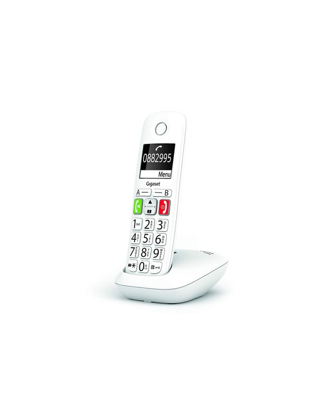 Quién podría imaginar que hacer llamadas podría ser tan fácil? Pantalla grande, de alto contraste, en blanco y negro Teclas individuales con números grandes Teclas rápidas para números de teléfonos importantes Función de amplificador para volumen extra alto Diferentes perfiles acústicos para una frecuencia óptima. Caracteres extragrandes en el modo de marcación y en el menú del teléfono General Nombre de artículo Gigaset E290 Características generales Conexión Analógico Número de teléfono (analógica) 1 Número de conversaciones simultáneas (analógica) 1 Standares DECT DECT, GAP ECO DECT Reducción automática de transmisión de enrgía, Libre de radiación en modo standby, Bajo consumo de energía Funciones Fuents Jumbo Características adicionales Tiempo en modo en espera hasta (h) 200 Tiempo de conversación hasta (h) 10 Número de registros en agenda telefónica (nombre/número) 150 Teclas de marcación directa en terminal 2 Función de remarcación automática en el terminal Si Supervisión de espacios (monitor de bebés) Interno (se requiere segundo terminal), Externa Marcación directa (Babycall) Si Función de alarma Si Tono de advertencia Si Call block function Si Blacklist (number of entries) 32 Anonymous call suppression: Calls without CLIP number are only indicated visually Si Day / night mode: Timed ringtone deactivation on handset Si Señalización óptica de llamada (pantalla iluminada) Pantalla iluminada, La tecla de llamada parpadea, Luz LED intermitente Número de terminales ampliables 4 Llamadas internas gratuitas Si Transferencia de teléfonos/libreta de direcciones interna a través de DECT (de terminal a terminal) Si Transferencia interna de llamadas externas, llamada de conferencia, devolución de llamada Si Características de sonido Conversación manos libres Cómoda opción de manos libres (calidad Full Duplex) Conversación manos libres terminal / baset Terminal Volumen ajustable Mediante el Menú, Mediante tecla de aumento Número de tonos 21 Características de la pantalla Tipo de pantalla Alfanúmerica blanco y negro iluminada Dimensiones (alt. x anch. mm) 34 x 37 Diagonal (pulg.) 2 Resolución (px) 96 x 64 Fuents Jumbo Sí Visualización del llamante en pantalla Indicación del número de teléfono llamante (CLIP) Lista de las últimas llamadas perdidas (número) con hora y fecha 25 Lista con (número de) llamadas entrantes con hora y fecha 25 Menú en varios idiomas (varios idiomas de pantalla) Si Tiempo / Fecha mostrada Si Número de idiomas 21 Características del teclado Teclado iluminado Si Manejo sencillo con teclas de navegación Si Tecla de mensajes Si Tamaño/especificaciones técnicas Terminal, alt x anch x prof en mm 173 x 52 x 28 Terminal, peso incl. batería en g 122 Estación base, alt x anch x prof en mm 48 x 88 x 105 Estación base, peso en g 70 Batería 2 x NiMH AAA https://www.gigaset.com/es_es/gigaset-e290-system-white-es/