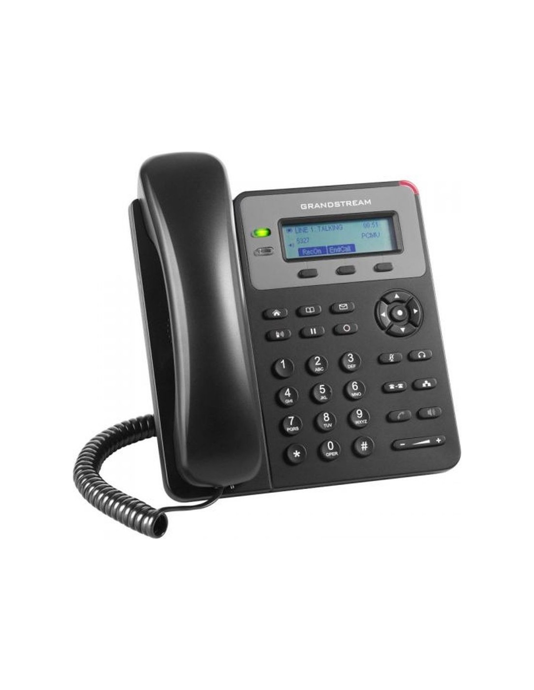 Teléfonos Grandstream GXP16xx Grandstream presenta la nueva serie de teléfonos IP: los Grandstream GXP16xx. Estos dispositivos han sido creados para ser óptimos para pequeñas y medianas empresas, ofreciendo funcionalidades adaptadas a las mismas. Estos dispositivos cuentan con un nuevo diseño, unas aptitudes de audio mejoradas y una interoperabilidad con la mayoría de plataformas IP. Además, todos los teléfonos de esta nueva serie están basados en Linux y son compatibles con los auriculares inalámbricos de Plantronics (EHS) La serie GXP16xx ofrece una amplia selección de funciones que facilitarán la comunicación en los pequeños negocios. Con un precio reducido y una calidad envidiable, Grandstream vuelve a revolucionar la comunicación IP. Grandstream GXP1615 El teléfono Grandstream GXP1615 es un teléfono IP de sobremesa ideal para pequeñas y medianas empresas. Con 1 única cuenta SIP y hasta 2 estados de llamada. El GXP1615 es un modelo basado en Linux y tiene 3 teclas XML programables sensibles al contexto. Además, gracias a su soporte multilenguaje y a la posibilidad de realizar conferencias a 3 vías, este teléfono se convierte en una solución de gran calidad. GXP1615 cuenta con 2 puertos Ethernet de 10/100 Mbps con detección automática y PoE integrado.Cuenta un amplio directorio telefónico de hasta 500 contactos. También integra las principales funciones de telefonía, como por ejemplo retención de llamadas, transferencia de llamadas, estacionamiento/recuperación de llamadas, historial de llamadas de hasta 200 registros, marcación automática al descolgar y tonos de llamada con música personalizada. Calidad de Sonido: Además, su calidad de sonido ha sido mejorada respecto los demás teléfonos IP, por ello su altavoz manos libres cuenta con una cancelación avanzada de eco acústico. El usuario podrá mantener conversaciones claras y nítidas también a través de un auricular Plantronics (ya que el GXP1615 es totalmente compatible con los auriculares Plantronics con descuelgue automático EHS). Su pantalla LCD gráfica de 132x48 píxeles, permitirá visualizar el historial de llamadas además de todas las funcionalidades del teléfono. Características: Protocolo SIP. 1 cuenta SIP. 2 estados de llamada. 2 puertos Ethernet 10/100 Mbps. PoE integrado. Manos libres Full Duplex. Compatible con audifonos Plantronics. Pantalla gráfica LCD de 132x48 píxeles. 3 teclas XML programables sensibles al contexto. Conferencia a 3 vías. Soporte multilenguaje. Tono de llamada/espera con música personalizada. Grabación de llamada con sólo presionar 1 botón. Aprovisionamiento de la funxión Zero-Config con el IP PBX serie UCM6100 de Grandstream. Altavoz con cancelación de avanzada de eco acústico. Directorio telefónico de hasta 500 contactos. Historial de llamadas de hasta 200 registros. 2 teclas de línea con LED bicolor. 13 teclas de función dedicada para: radiolocalización/intercomunicación, directorio telefónico, mensaje, inicio, retener, grabar, silencio, audífonos, transferencia, conferencia, enviar/remarcar, altavoz y volumen. Retención de llamadas. Transferencia de llamadas. Reenvío de llamadas. Conferencia a 3 vías. Directorio telefónico descargable. Marcación automática al descolgar. Respuesta automática. Tonos de llamadas con música personalizada. Conector RJ9 para permitir EHS con audífonos Plantronics. Base de soporte regulable con 2 ángulos. Montaje mural posible. Fuente de alimentación universal. Dimensiones: 209 x 184,5 x 76,2 mm. Peso: 0,74 kg.