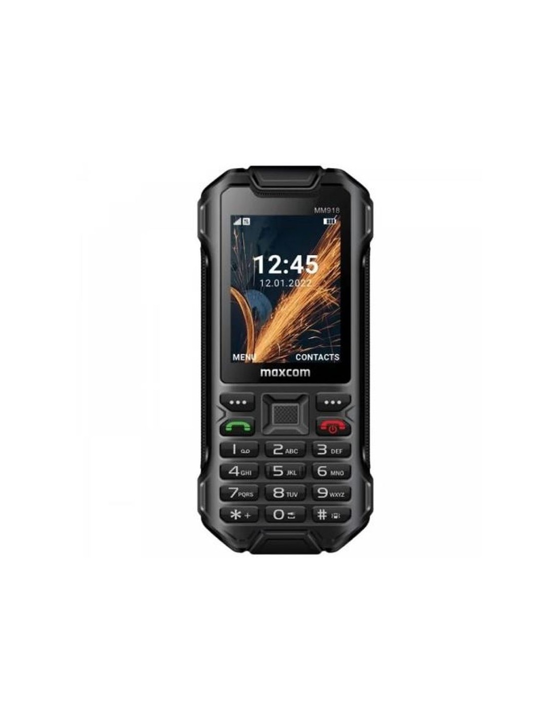 MAXCOM MM918L RUGERIZADO 2,4 2MPX 4G BLACK Exhibición Diagonal de la pantalla: 6,1 cm (2.4) Resolución de la pantalla: 240 x 320 Pixeles Pantalla táctil: No Memoria Tarjeta de soporte flash: Si Tarjetas de memoria compatibles: MicroSD (TransFlash) Tamaño máximo de tarjeta de memoria: 32 GB Cámara fotográfica Resolución de la cámara trasera (numérica): 2 MP Cámara trasera: Si Cámara frontal: No Conexión Generación de red móvil: 4G Red de datos: GSM, LTE, UMTS WAP: Si Bandas soportadas WCDMA: 900,2100 MHz Transmisión de datos Bluetooth: No Puertos e Interfaces Puerto USB: Si Mensajería Servicios de mensajes cortos (SMS): Si Sistema de mensajería multimedia (MMS): Si Audio Radio FM: Si Reproductor de música: Si Control de energía Capacidad de batería: 2500 mAh Peso y dimensiones Peso: 124 g Ancho: 59 mm Profundidad: 20 mm Altura: 130 mm Detalles técnicos Color del producto: Negro Tipo de suscripción: Sin suscripción Linterna integrada: Si GPRS: Si Código IP (International Protection): IP68 Calculadora: Si Calendario: Si Características del teléfono Gestión de la información personal: Despertador, calculadora, calendario Factor de forma: Barra