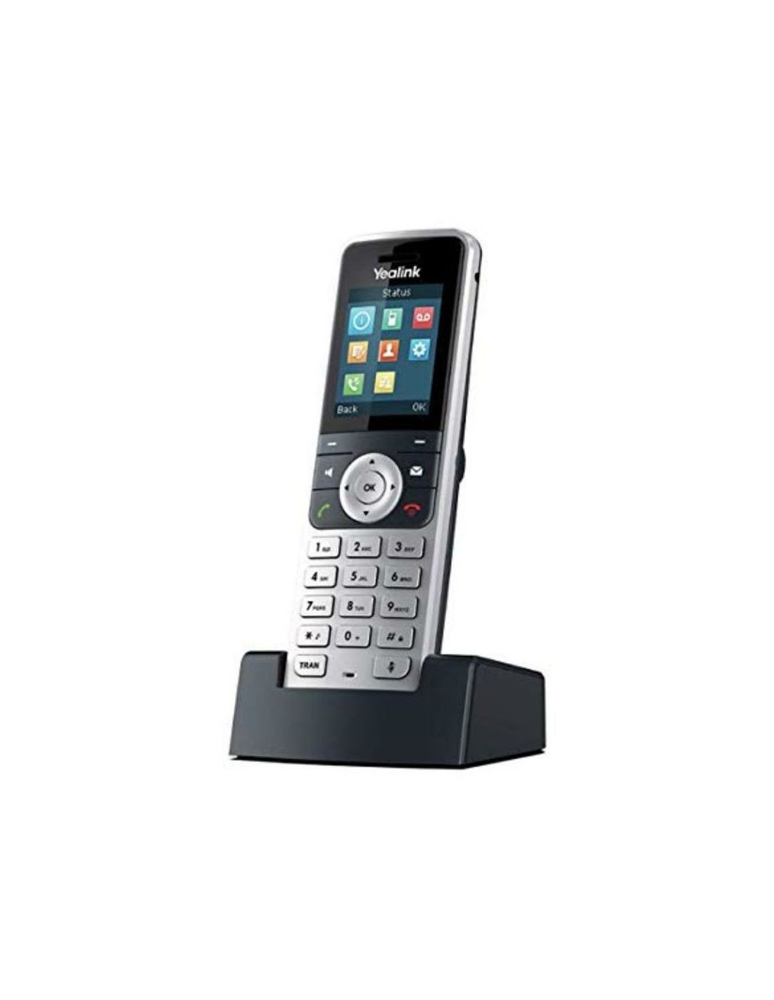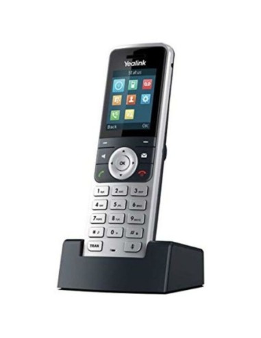 Yealink DECT W53H Teléfono DECT supletorio compatible con teléfono base W53P 150mm x 48.4mm x 25mm Pantalla a color 1,8, altavoz Full duplex Batería Litio-Ion: Carga rápida, Autonomía de hasta 18 horas en conversación, 200 horas en reposo. Conector 3,5mm para auriculares CARACTERÍSTICAS PRINCIPALES Compatible con la base W52P Firmware V81 o superior. Terminal DECT para la base W60B. Pantalla a color de 128 x 160 píxeles y 1,8. Teclado numérico con 12 teclas, 5 teclas de navegación, 2 Softkeys, 6 teclas de función, 6 teclas de acceso directo. Altavoz Full-duplex. Control de volumen de llamada: 5 niveles. Control de volumen de timbre: 5 niveles+apagado. 100 contactos locales por terminal. Tonos de aviso múltiples. Advertencia acústica de batería baja. Montable en mesa o pared. Alcance en interiores: 20 m ~ 50 m (la distancia ideal son 50 m). Alcance en exteriores: 300 m (en condiciones óptimas). Tiempo en espera: 200 h (condiciones óptimas). Tiempo de conversación: 18 h (Condiciones óptimas).. Cargador: 5 VCC/600 mA de salida. Dimensiones del teléfono: 150 mm x 48.4 mm x 25 mm. Humedad de funcionamiento: 10 ~ 95 %. Temperatura de funcionamiento: -10 ~ +50 °C. Luz de fondo de la pantalla y del teclado. Actualización por OTA (Over-The-Air). Rango de frecuencia 1880 1900 MHz (Europa). Jack de 3,5mm para auriculares.