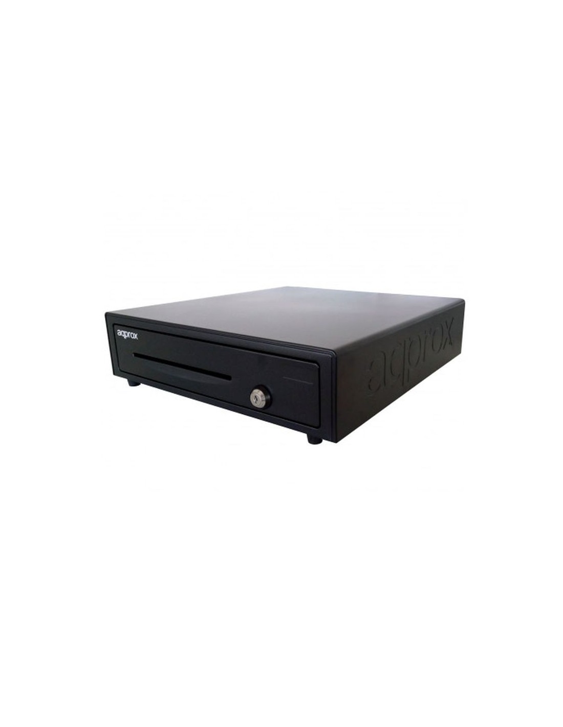 4 compartimentos de billetes ajustables con clip de sujeción 8 compartimentos de monedas ajustables Compartimento para cheques (16 mm. altura) Apertura manual o automática Cerradura de tres posiciones Incluye 2 llaves Cerradura de tres posiciones. Puede abrirse manual o electrónicamente. Peso neto: 5,8 kg. Peso bruto: 6,5 kg. Tamaño: 410 (ancho) x 420 (largo) x 100 (alto) mm. Color: negro. Rango de pulso: 100~200ms. Voltaje: DC12V/1A. Temperatura: -10 a 40C. Humedad relativa: 40 a 95%. CONTENIDO DEL EMBALAJE APPCASH01 Cable conexión a impresora 2 llaves Guía de usuario
