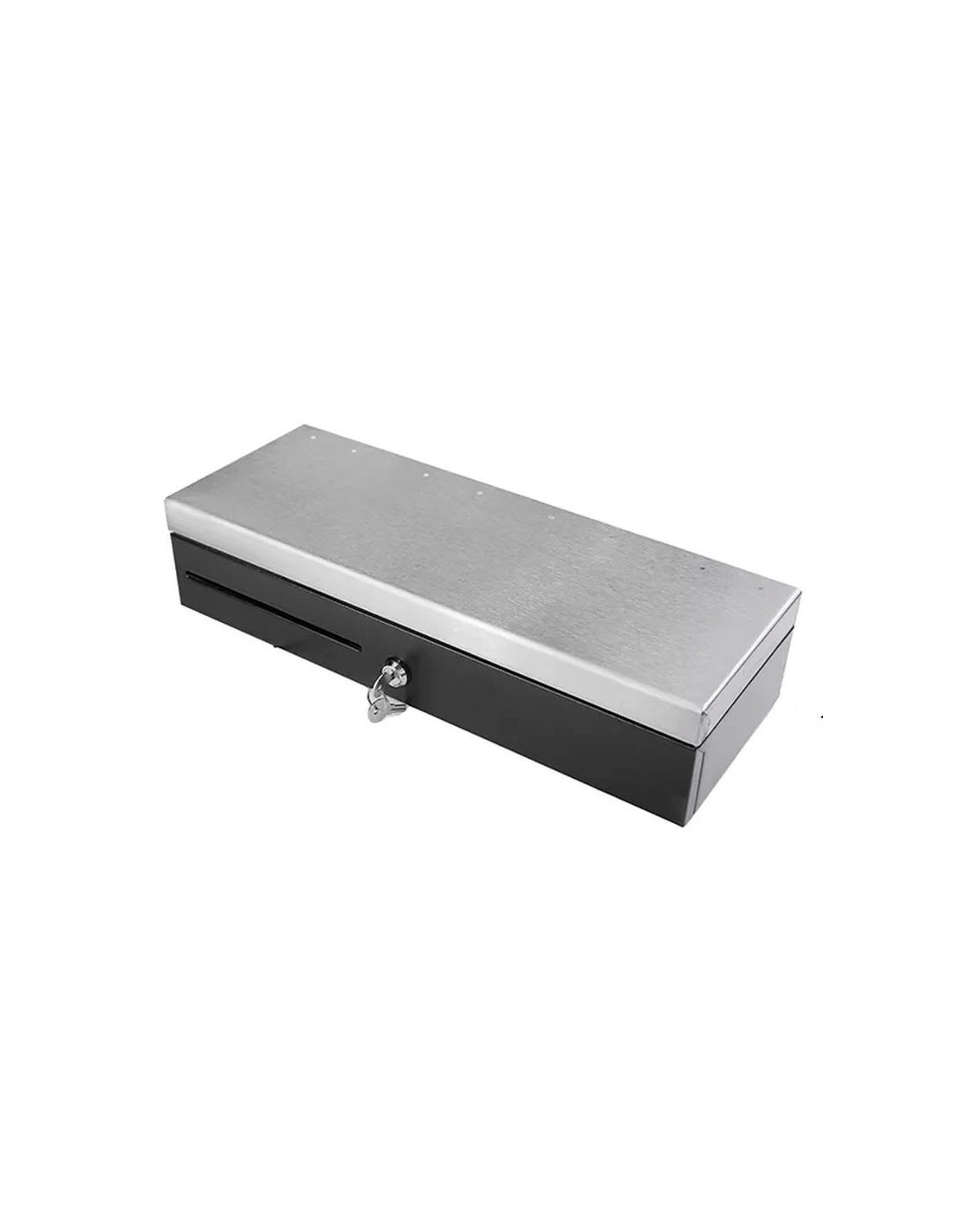 6/7 compartimentos de billetes ajustables y 8 de monedas fijos. Cerradura de tres posiciones. Carcasa metálica de alta resistencia. Ranura frontal para las transacciones sin efectivo o de grandes billetes. Interface: RJ12 para impresora de ticket + Microswitch Segunda Gaveta y Tapa de Gaveta con cerradura opcionales. Terminado en acero inoxidable. Dimensiones: 460 x 170 x 100 mm. General Anchura (mm): 460 Fondo (mm): 170 Interface: RJ11 Imp. ticket Separadores billetes: 6 Separadores monedas: 8 Tipo de apertura: Vertical (Fliptop)
