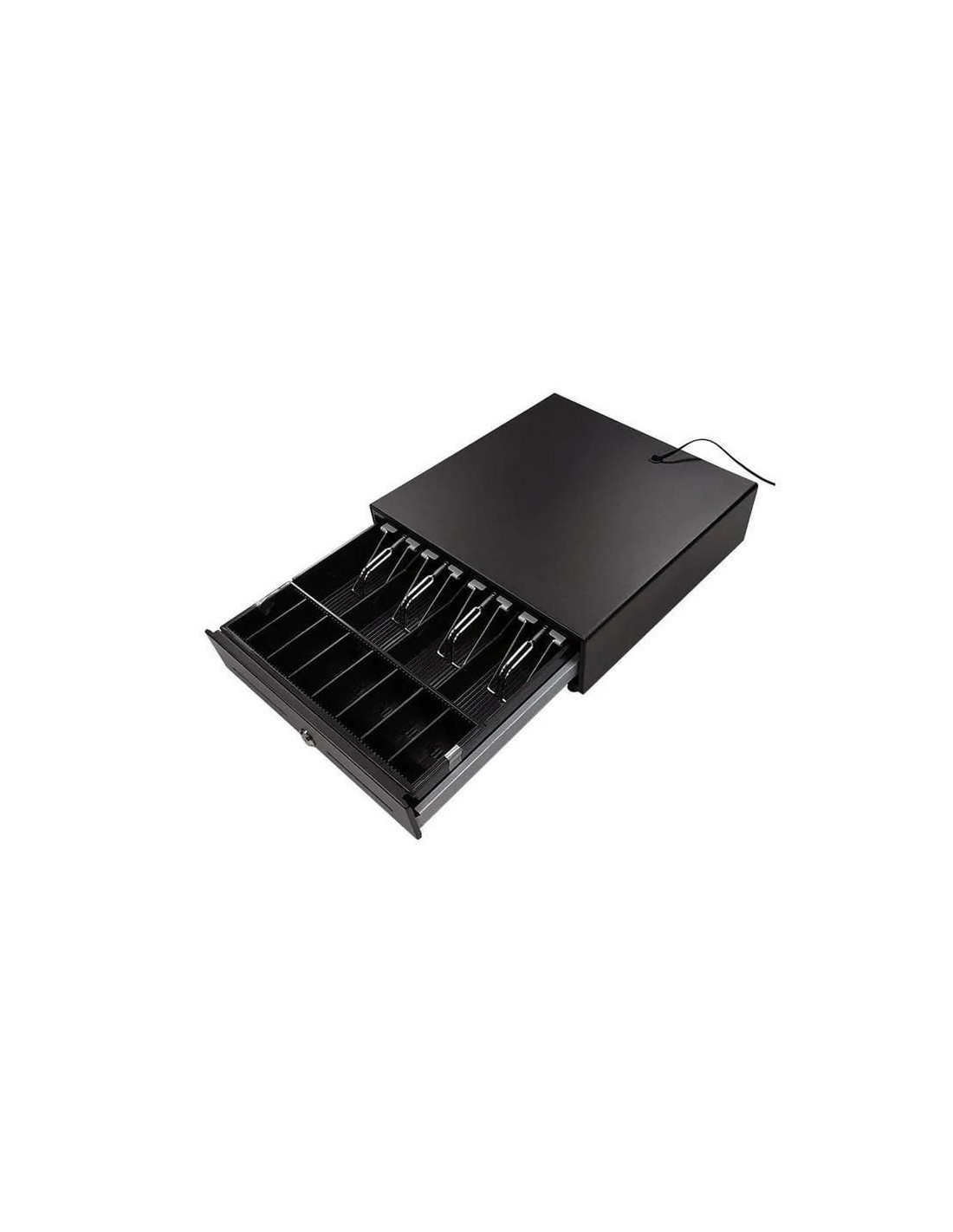Los cajones portamonedas constituyen una herramienta muy útil para distintos establecimientos, como bares o tiendas, en los que se realiza una venta o servicio directo al cliente, que éste paga en efectivo, intercambiando moneda en la transacción. Tradicionalmente, el cajón portamonedas forma parte de un sistema TPV, terminal de punto de venta, que gestiona tareas de venta al público informáticamente. Un software adecuado permite llevar el control de caja, imprimir tickets y todas las gestiones necesarias en un establecimiento comercial. Marca Mustek Modelo LB-330A Características - Conector RJ11 a 24 V - Carcasa metálica de alta resistencia. - Ranura frontal para las transacciones sin efectivo o de grandes billetes - Cerradura de tres posiciones. - 8 x Monederos y 4 x Billeteros - Dimensiones: 330 x 335 x 90 mm
